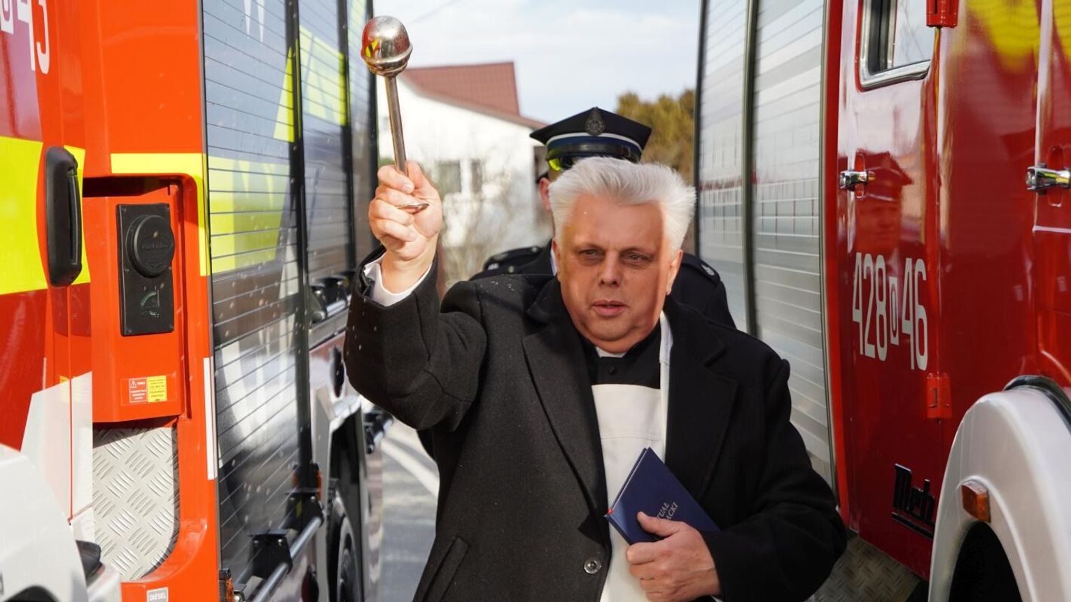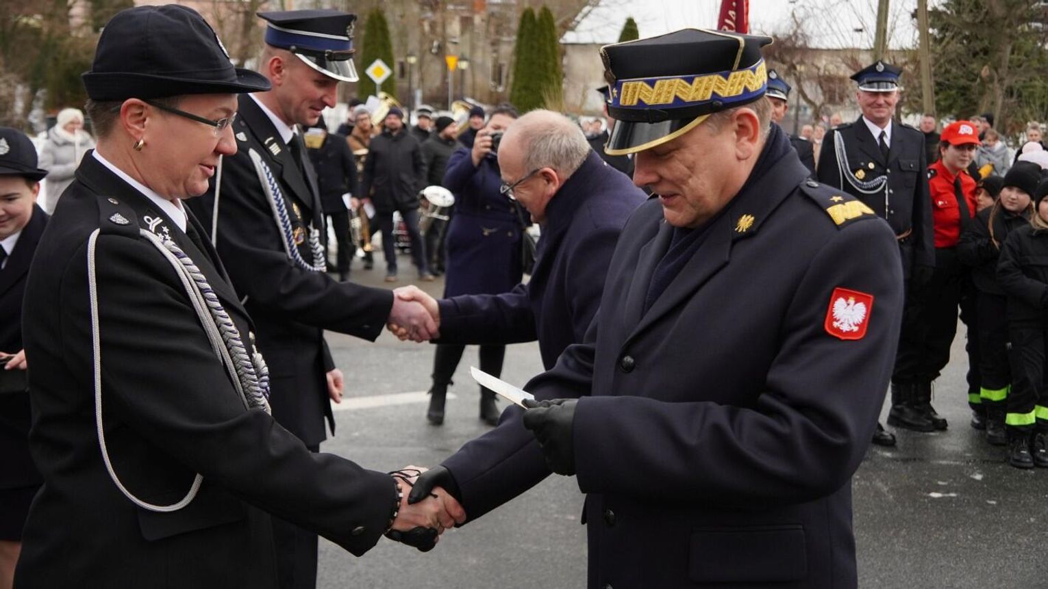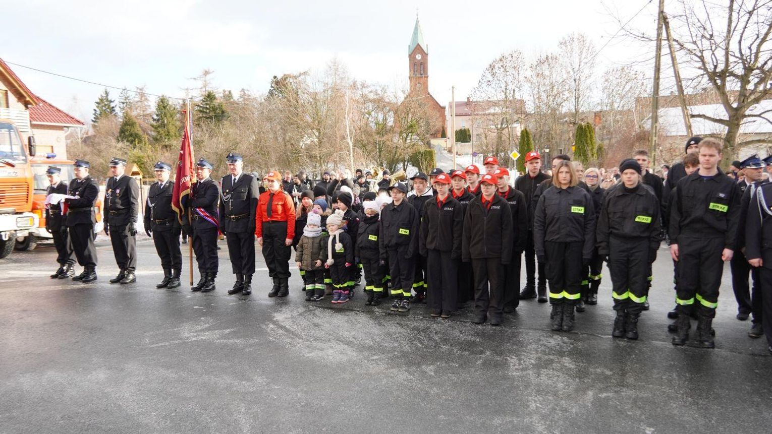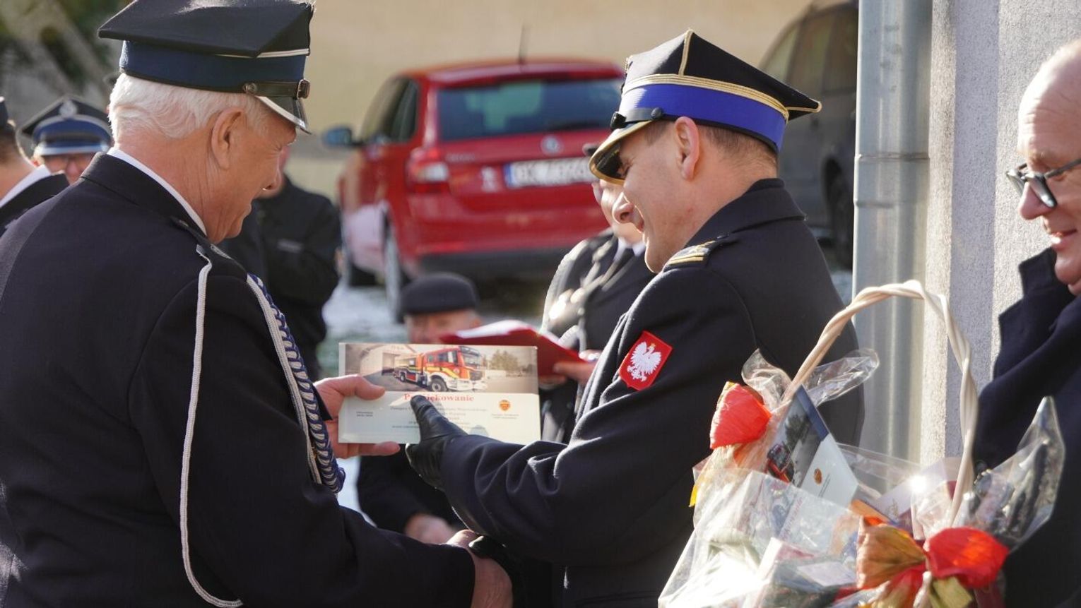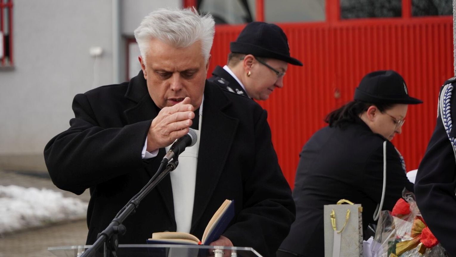 Wójt gminy Pawłowiczki Jerzy Treffon podkreślił, że zależało mu, aby w tej części uroczystości szczególnie wyróżnić osoby i podmioty, dzięki którym możliwe było sfinansowanie zadania wartego niemal 1,3 mln zł. Styczniowe spotkanie miało więc charakter oficjalnego przekazania pojazdu, domknięcia całego procesu oraz wyrażenia wdzięczności wszystkim zaangażowanym w pozyskanie nowego wozu dla jednostki.