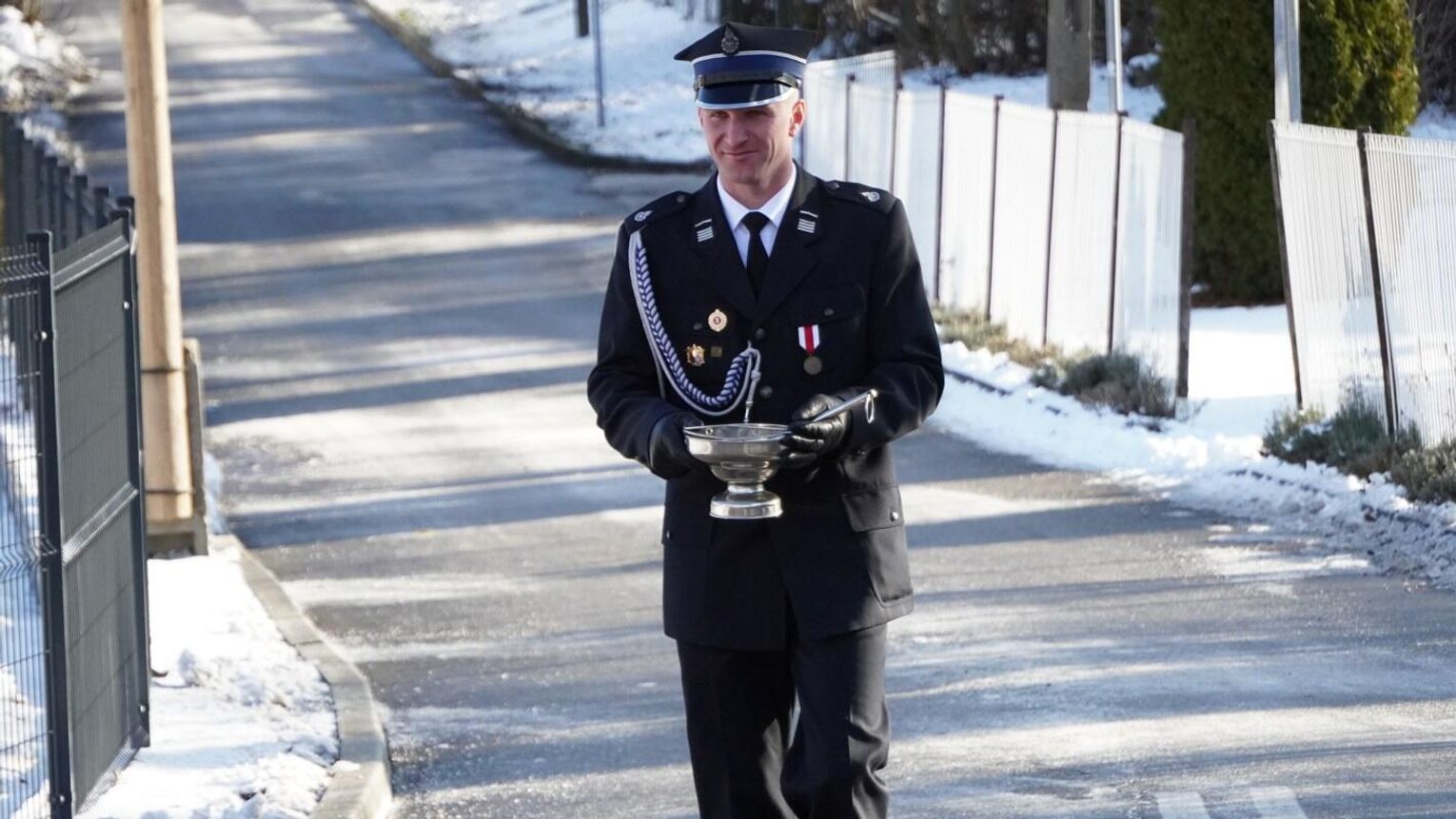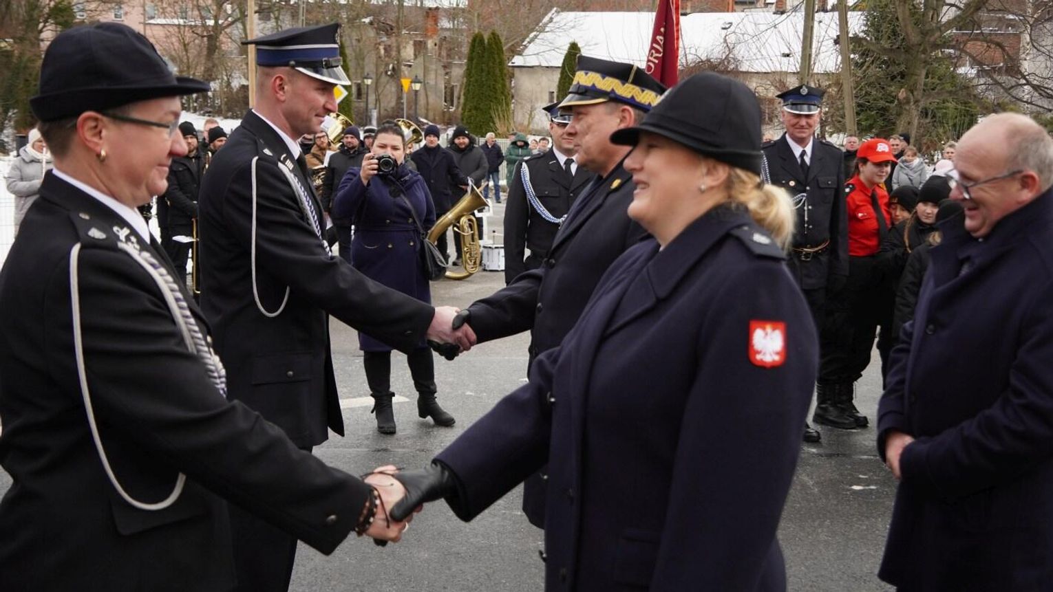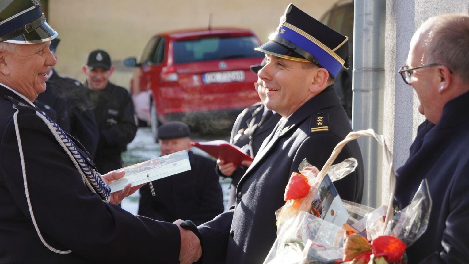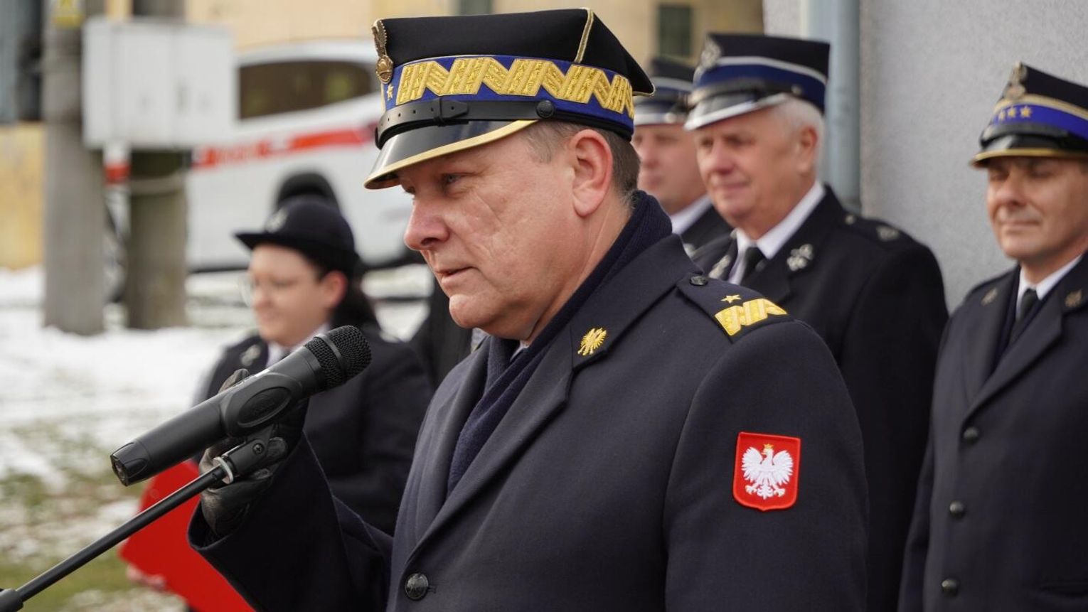 Wójt gminy Pawłowiczki Jerzy Treffon podkreślił, że zależało mu, aby w tej części uroczystości szczególnie wyróżnić osoby i podmioty, dzięki którym możliwe było sfinansowanie zadania wartego niemal 1,3 mln zł. Styczniowe spotkanie miało więc charakter oficjalnego przekazania pojazdu, domknięcia całego procesu oraz wyrażenia wdzięczności wszystkim zaangażowanym w pozyskanie nowego wozu dla jednostki.