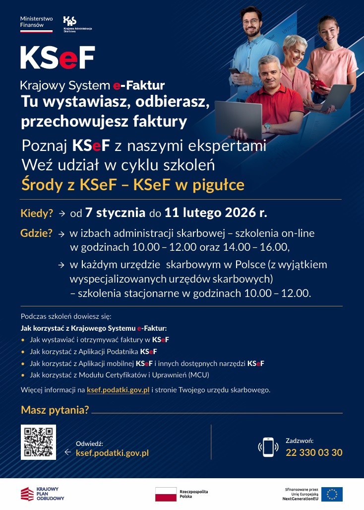 Aby się jednak do tego lepiej przygotować Urząd Skarbowy w Kędzierzynie-Koźlu przypomina o cyklu bezpłatnych szkoleń pt. „Środy z KSeF”. Kolejna edycja akcji potrwa od 7 stycznia do 11 lutego.