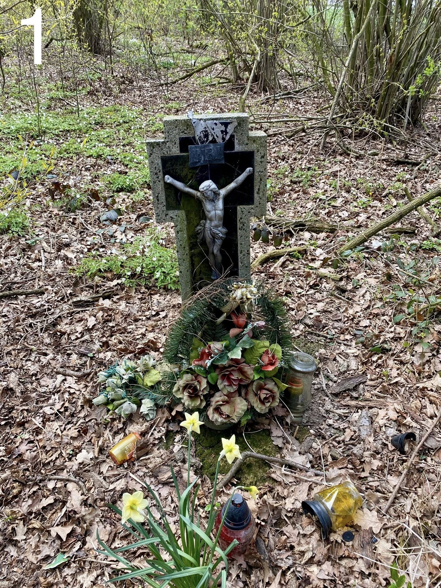 Właściwie trzeba raczej użyć terminu „znajdowała się”, bo z moich informacji wynika, że doszło tam jakiś czas temu do ekshumacji. W lesie jest jeszcze inna znana mogiła. Kilka lat temu odwiedzając ten las byłem pod wrażeniem tej mogiły żołnierskiej, a z tabliczki znajdującej się na niej wyczytałem, że w tym miejscu 18.03.1945 roku, między godziną 8 a 9 rano, zginął porucznik Paul Hahn, zastrzelony przez radzieckich żołnierzy. Spore jednak było moje zdziwienie po uzyskaniu informacji, że nie jest to grób, a tylko symboliczna mogiła. Żołnierza próbowano ekshumować, jednak okazało się, że nie ma tam żadnego pochówku. Od tamtego czasu zwracałem baczną uwagę na sprawę mogił w pokrzywnickim lesie. Napisałem w liczbie mnogiej, bo zupełnie niedawno okazało się, że wojennych pochówków jest w tym lesie więcej – wyjaśnia Sławomir Wilkowski twórca kanału historycznego Bunker King.