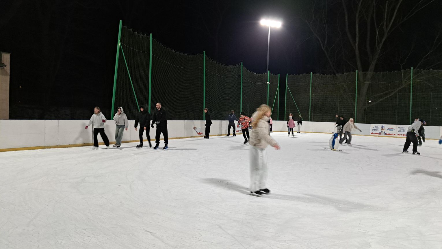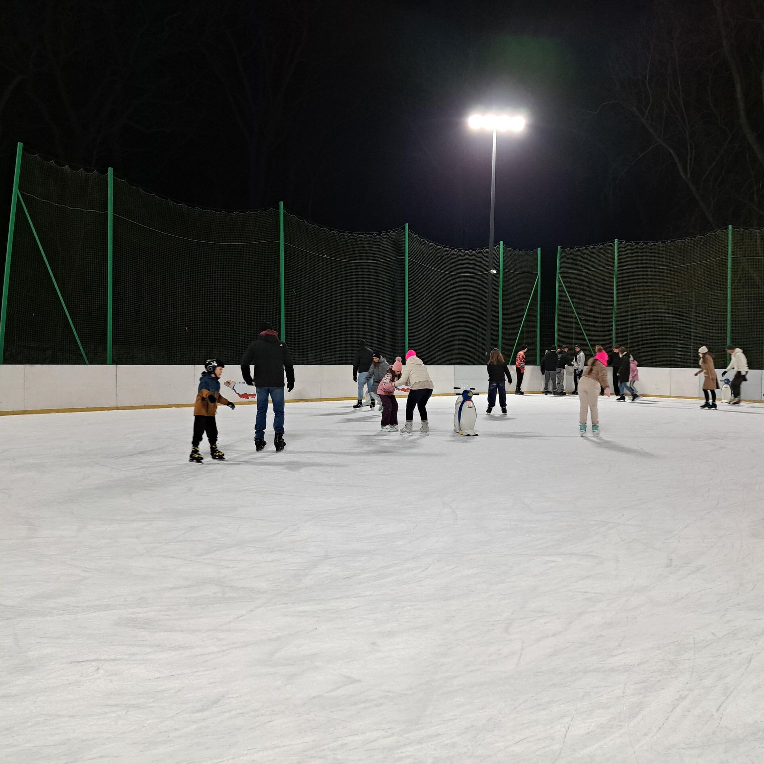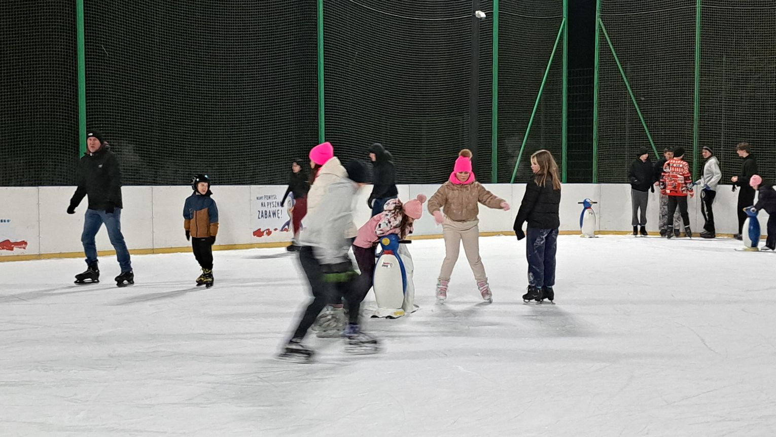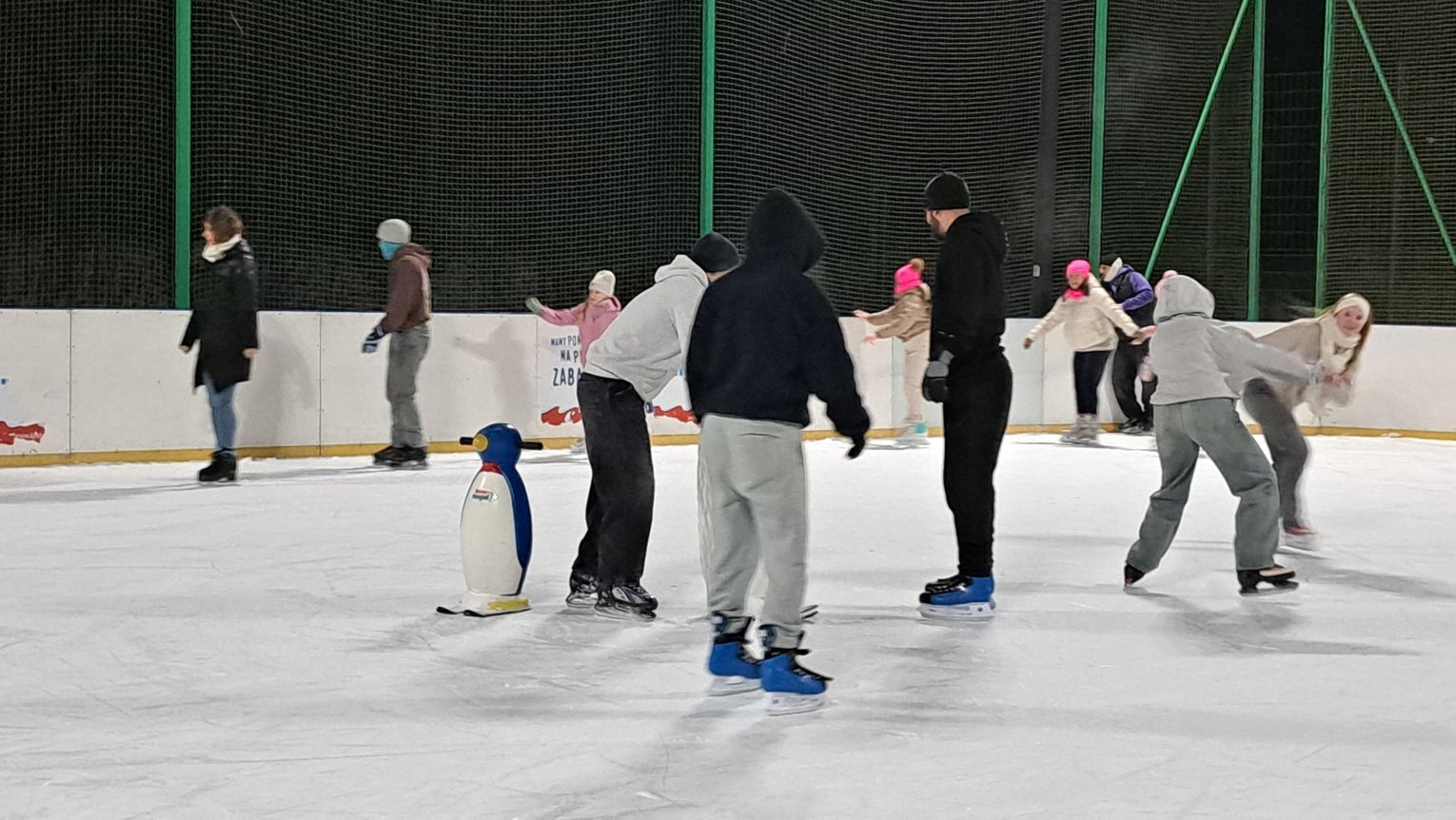 Wizytę złożyliśmy we wtorkowy wieczór (6 stycznia) i faktycznie widok wypełnionej przez dzieci i młodzież tafli lodu robił wrażenie. Nie zabrakło też osób dorosłych, które były jednak w mniejszości.