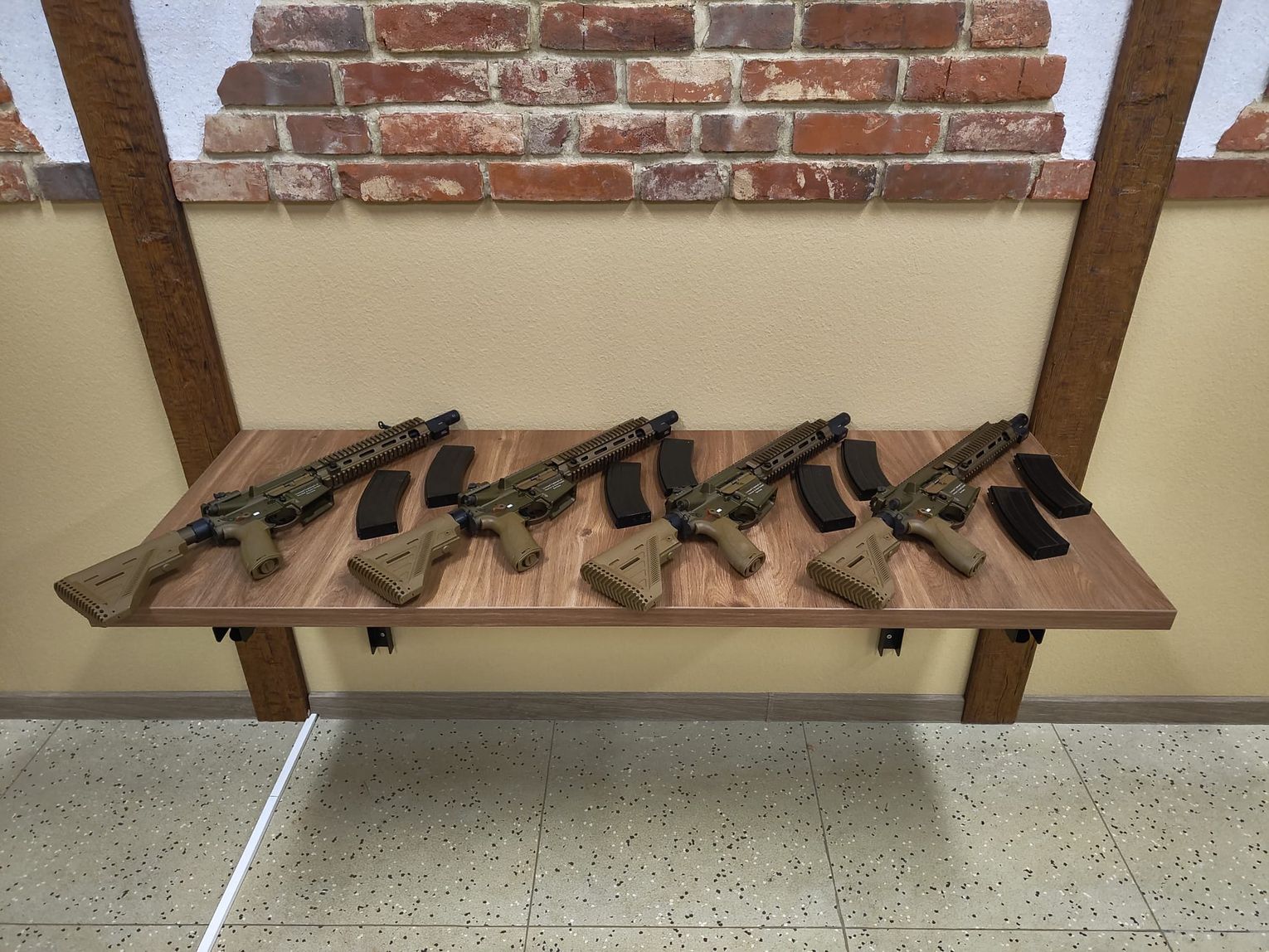 W ramach wyposażenia strzelnicy użytkownicy będą mogli korzystać z replik broni działających w systemie blow-back, które realistycznie odwzorowują działanie prawdziwej broni. Do dyspozycji oddano replikę karabinu szturmowego HK416 oraz pistoletu GLOCK 19X, zasilanych systemem Green Gas. Takie rozwiązania pozwalają na naukę prawidłowej postawy, celowania i pracy na spuście, przy jednoczesnym zachowaniu najwyższych standardów bezpieczeństwa.