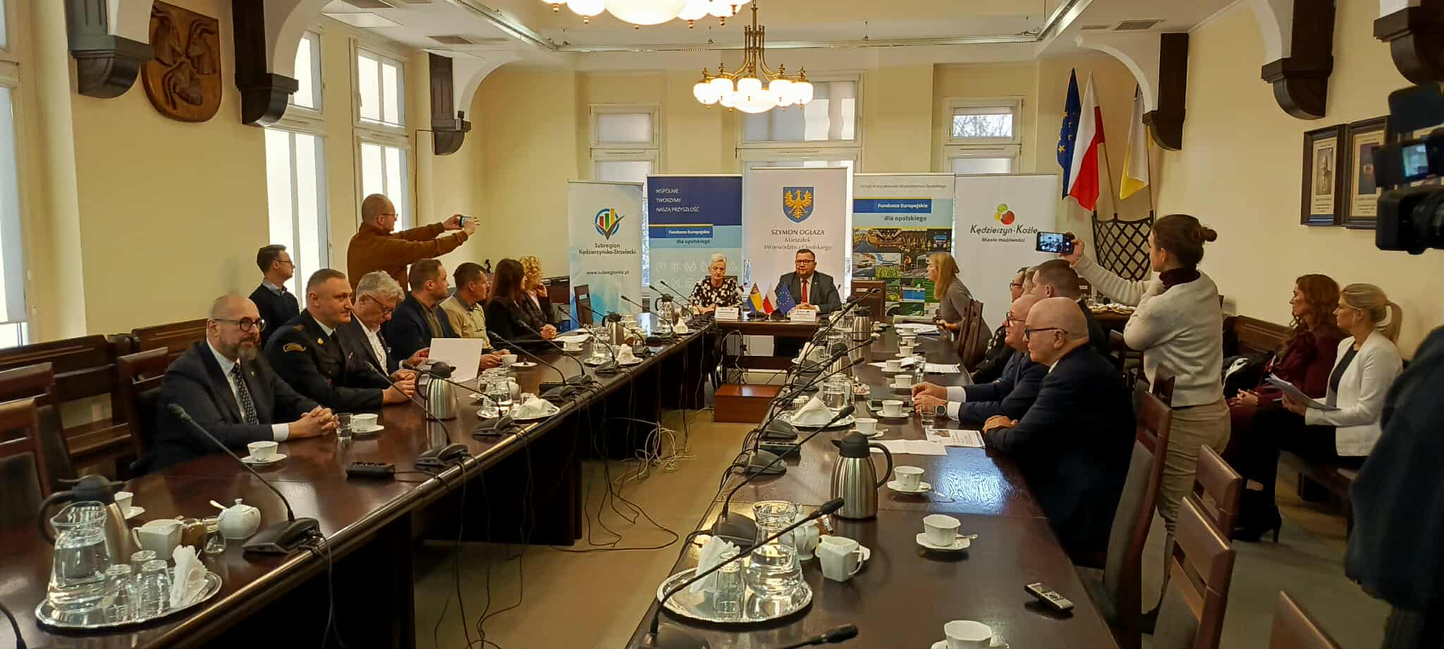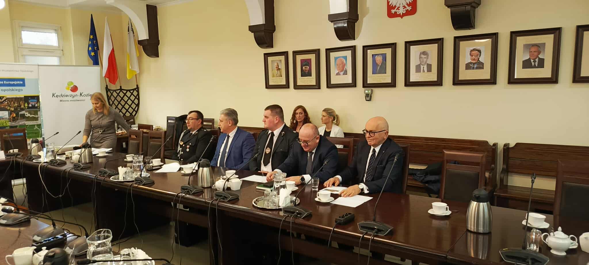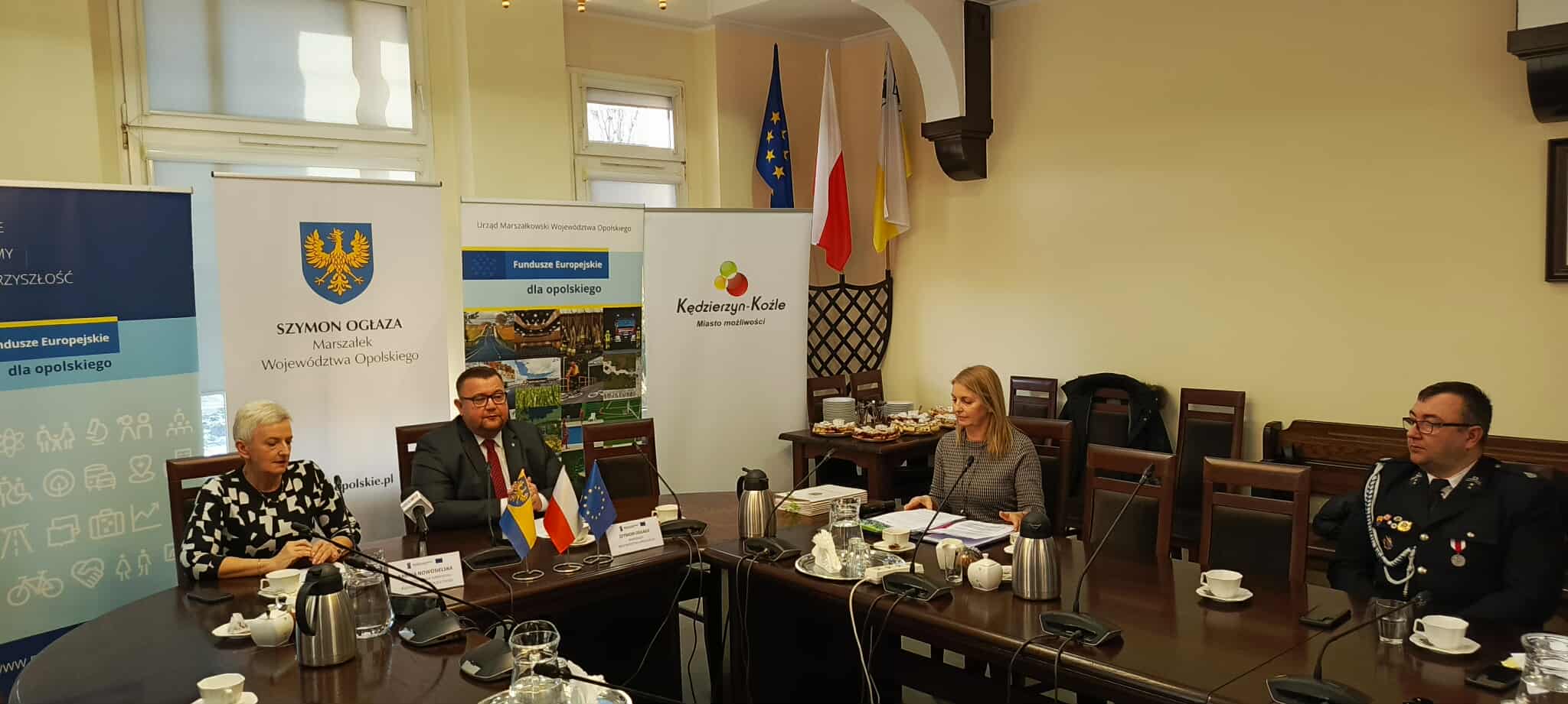 Uroczyste wręczenie umów na projekty Funduszów Europejskich dla Opolskiego dot. zapobiegania zagrożeniom związanym ze zmianą klimatu, mobilności miejskiej i rewitalizacji na obszarach miejskich miało miejsce w Urzędzie Miasta Kędzierzyn-Koźle. Chodzi o umowy dla beneficjentów z Subregionu Kędzierzyńsko-Strzeleckiego. Uczestnikami wydarzenia są między innymi: marszałek województwa Szymon Ogłaza, prezydent Kędzierzyna-Koźla Sabina Nowosielska oraz wicestarosta powiatu Józef Gisman.