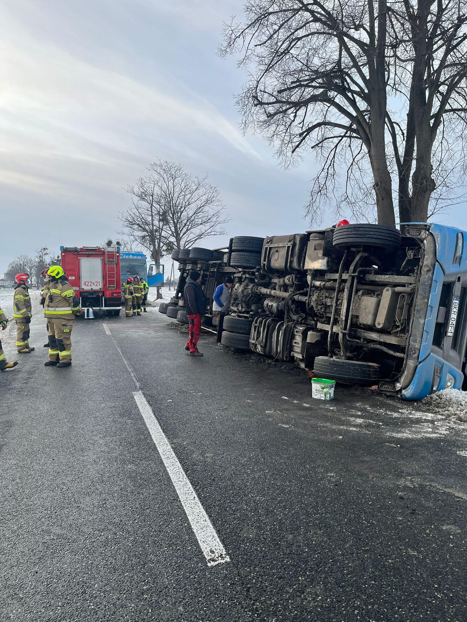 Ze wstępnych ustaleń wynika że 40-letni kierujący ciężarowym Manem nie dostosował prędkości do warunków panujących na drodze i zjechał do przydrożnego rowu.