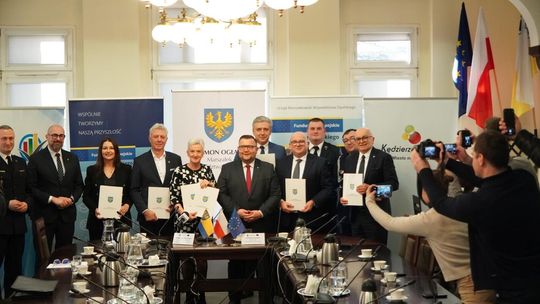 Podczas spotkania - zorganizowanego w Urzędzie Miasta Kędzierzyn-Koźle - marszałek Szymon Ogłaza przekazał samorządom osiem umów obejmujących transport, bezpieczeństwo oraz modernizację przestrzeni publicznych.