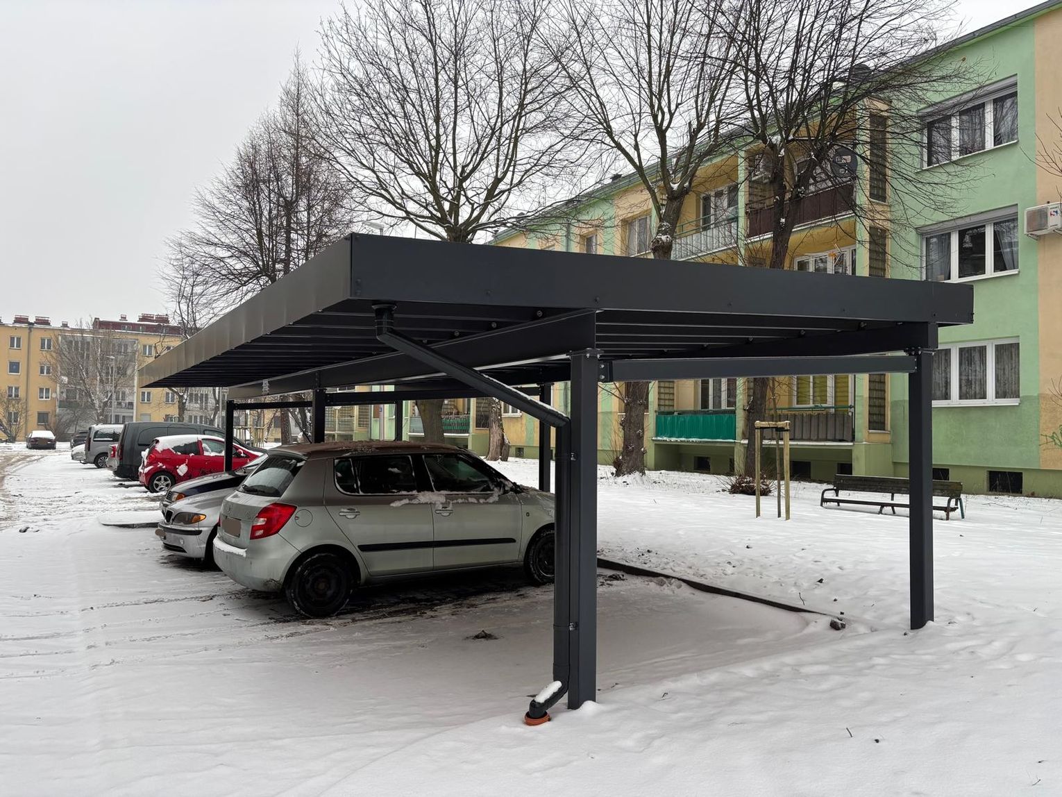Dodatkową nowością w tym miejscu jest 6 wiat, pod którymi zaparkować mogą łącznie 24 pojazdy. Ich dachy porośnięte są specjalnymi roślinami. Nie wymagają one intensywnej pielęgnacji, są odporne na mrozy i doskonale znoszą słoneczne stanowiska.