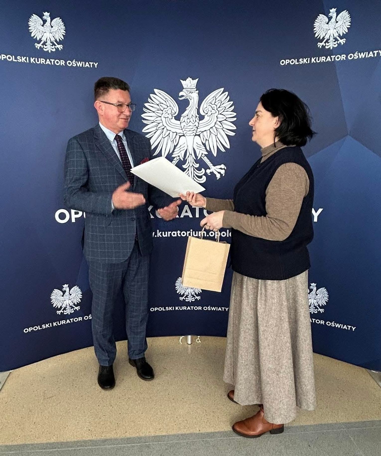 Uroczyste wręczenie oceny odbyło się w obecności Opolskiego Wicekuratora Oświaty, Pana Marka Leśniaka, oraz starszej wizytatorki Kuratorium Oświaty w Opolu, Pani Marioli Korczyńskiej, sprawującej nadzór nad naszą placówką.