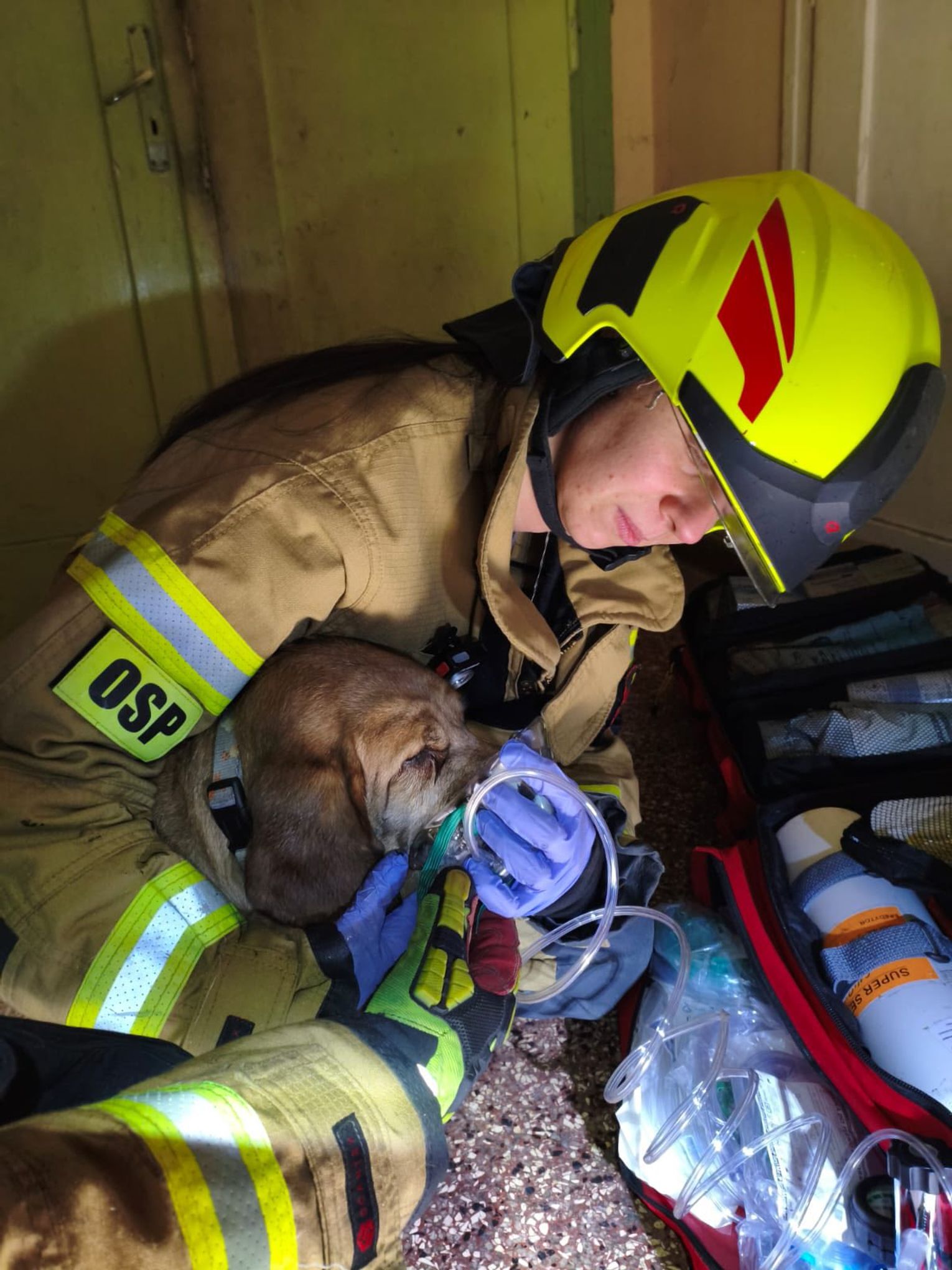 - ewakuacji psa z palącego się lokalu i udzielenie mu tlenoterapii,