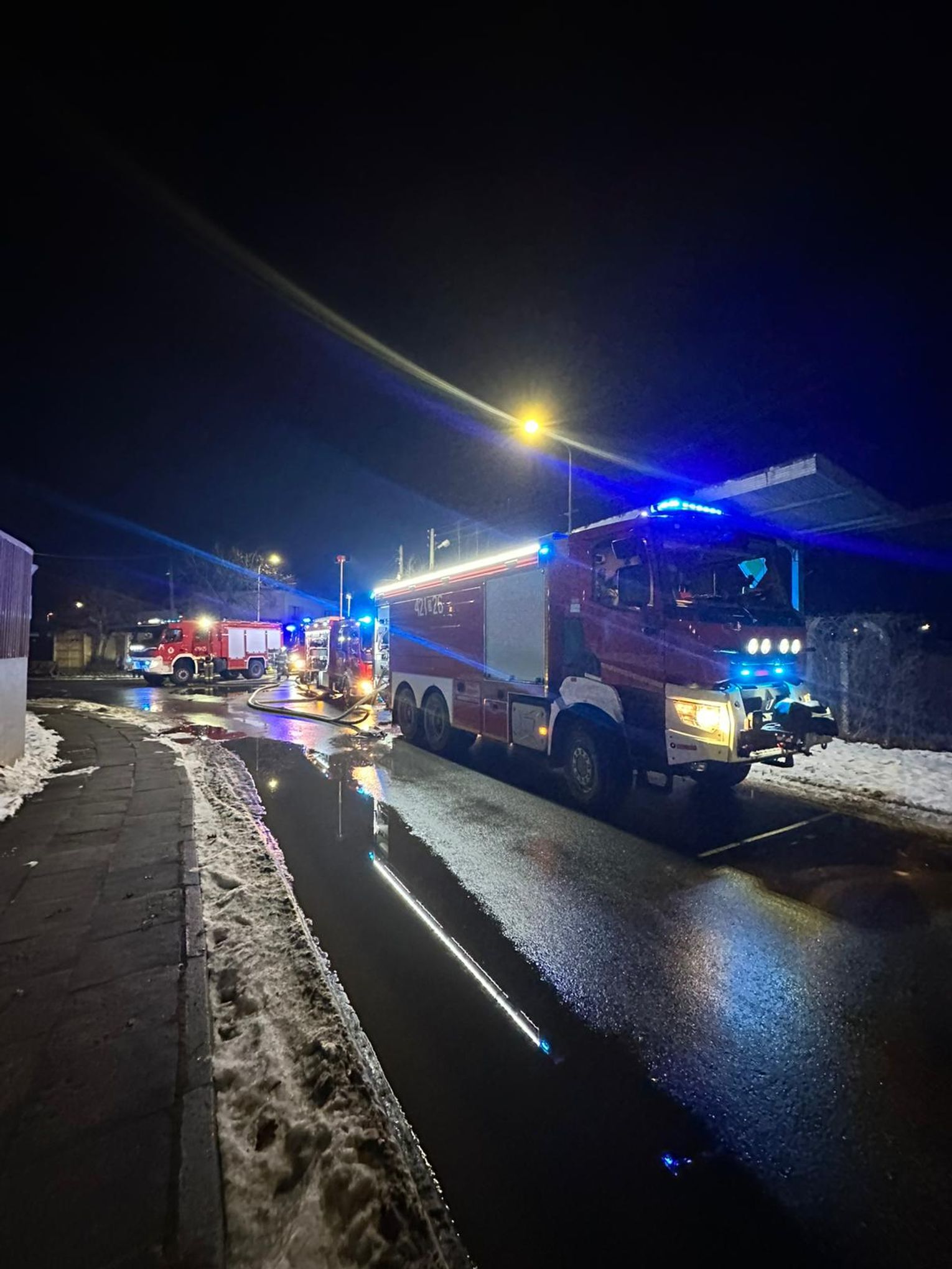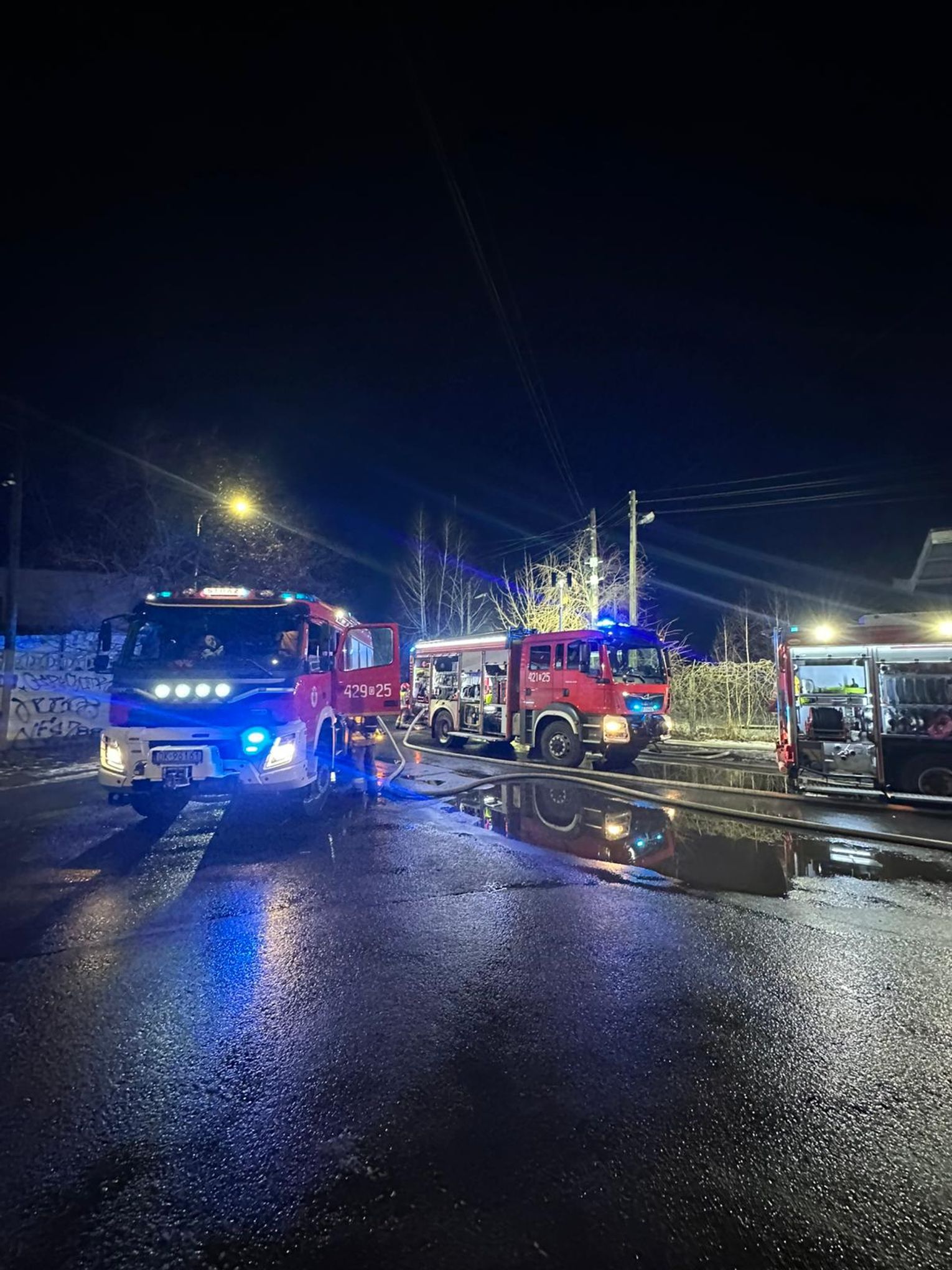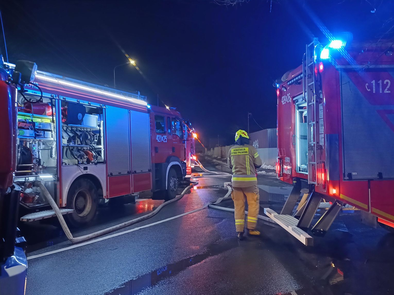 15 stycznia o godzinie 1:20 otrzymaliśmy zgłoszenie o pożarze pustostanu przy ulicy Powstańców w Kędzierzynie-Koźlu. Na miejsce skierowano zastępy z Jednostek Ratowniczo-Gaśniczych nr 1 i 2 w Kędzierzynie-Koźlu, a także zastępy OSP z terenu miasta. Po dojeździe na miejsce zastano pożar dwóch przyległych do siebie pustostanów, które całkowicie są objęte ogniem. Strażacy przystąpili do akcji gaśniczej, równocześnie działań mających na celu poszukiwania ewentualnych osób poszkodowanych. Przyczynę będzie ustalała policja w toku działań dochodzeniowo-śledczych. Na tą chwilę, godz. 3:30 działania polegają na dokładnym dogaszeniu pożaru, a także przeszukaniu obiektów czy nie ma osób poszkodowanych - mówił w trakcie działań st. kpt. Grzegorz Pawełek, Zastępca Komendanta Powiatowego Państwowej Straży Pożarnej w Kędzierzynie-Koźlu.