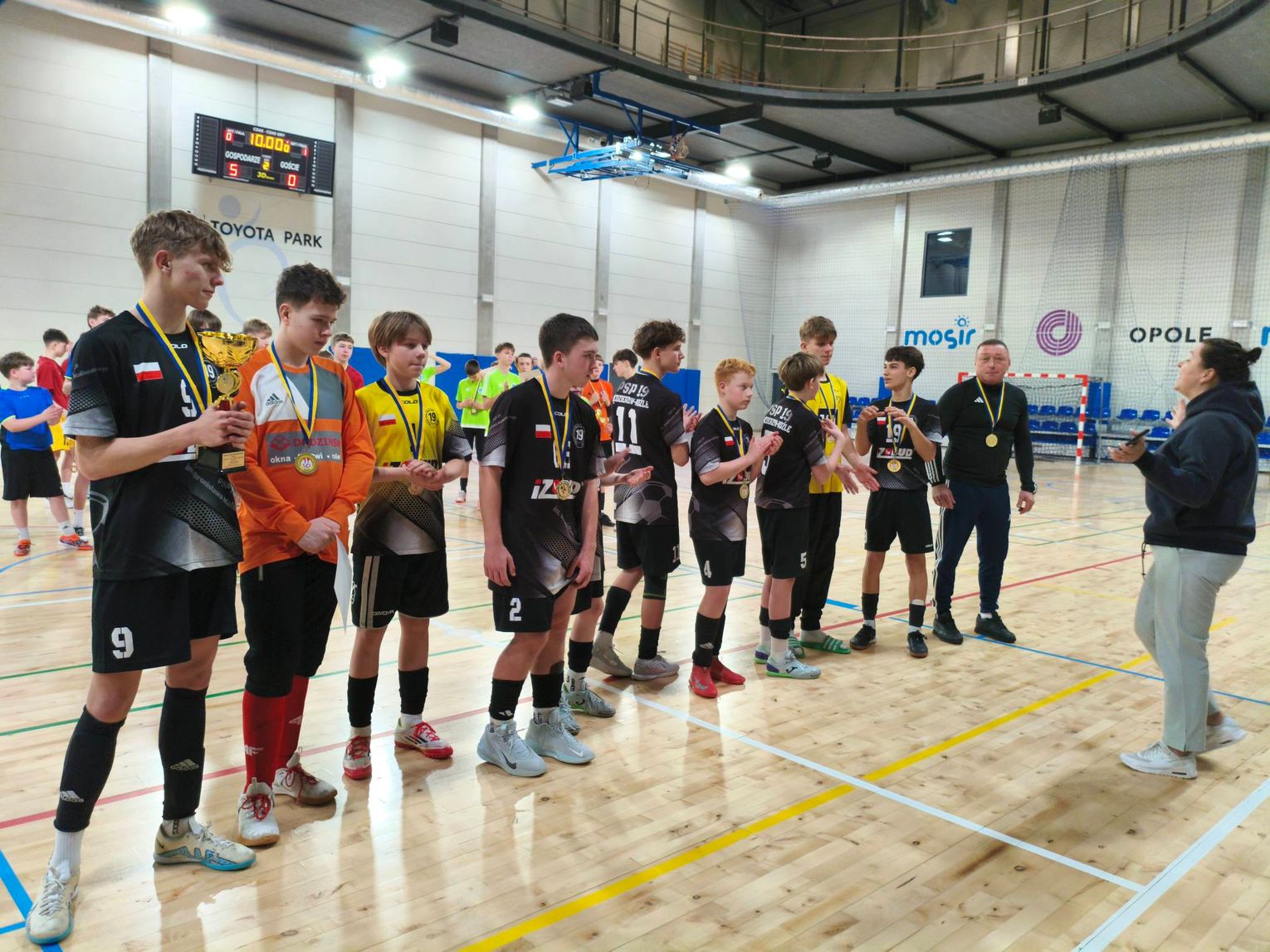 To jest sytuacja niecodzienna, szczególnie gdy w zespole jest plaga kontuzji i musisz radzić sobie z potwornym bólem że łzami w oczach. Tak było w środę Opolu. Jeszcze 18 h. przed tym turniejem wykluczony był udział w tych zawodach naszych prawdziwych kreatorów gry braci Filipa i Marcela Kondraciuk (kontuzje przeciążeniowe po świetnych ich występach w Niemczech w barwach klubowych Górnika Zabrze oraz Tomasza Kardasza przeziębienie). Na dodatek po środowej rozgrzewce Dawid Potym uskarżał się na ból pleców. Wszystko jednak jakoś się odmieniło. Trzej chłopcy zagrali w tym turnieju na wielkim poświęceniu. To wszystko było kosztem swojego zdrowia, ale oni zagrali dla drużyny dla szkoły i miasta i to jak pięknie! Był to dla tych trzech chłopców kolosalny wysiłek. Czasami mieli łzy w oczach. Oni podporządkowują całe swoje życie piłce i nauce. Jest to postrzegane jak coś wyjątkowego. Licząc wszystkie medale drużynowe, to ta grupa chłopców rocznik 2012 ma ich w swoim dorobku 14 w tym 8 złotych 1 srebrny i 5 brązowych, na przestrzeni 3,5 roku startów - wylicza trener piłkarzy z PSP nr 19, Jan Węgrzyn.
