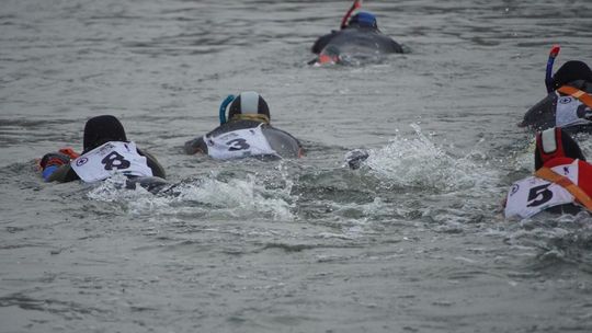 Warunki były typowo zimowe: niska temperatura powietrza, zimny wiatr i woda. Mimo to uczestnicy płynęli w dobrych nastrojach, wspierani przez zabezpieczenie i kibiców obecnych na starcie i mecie.