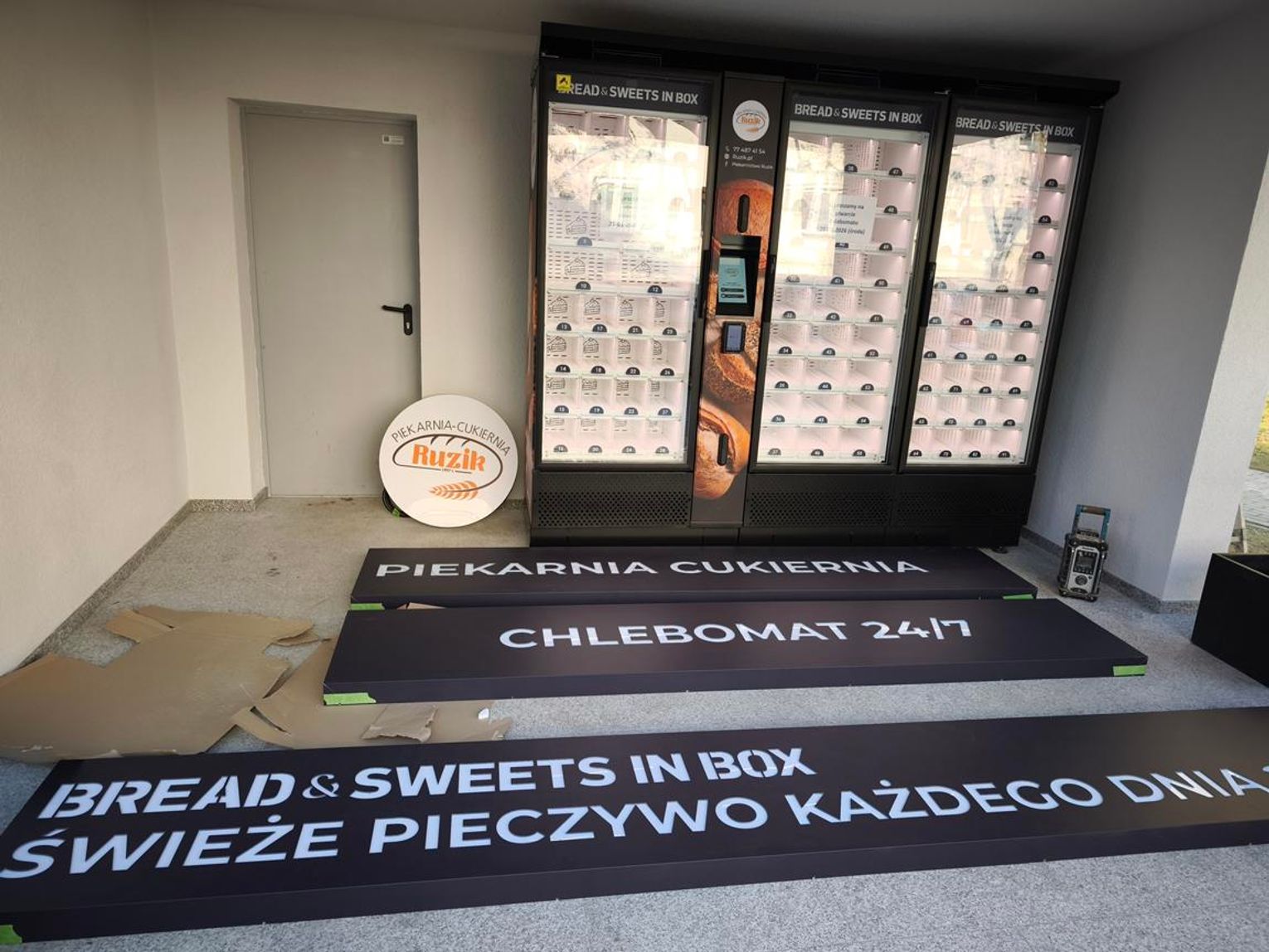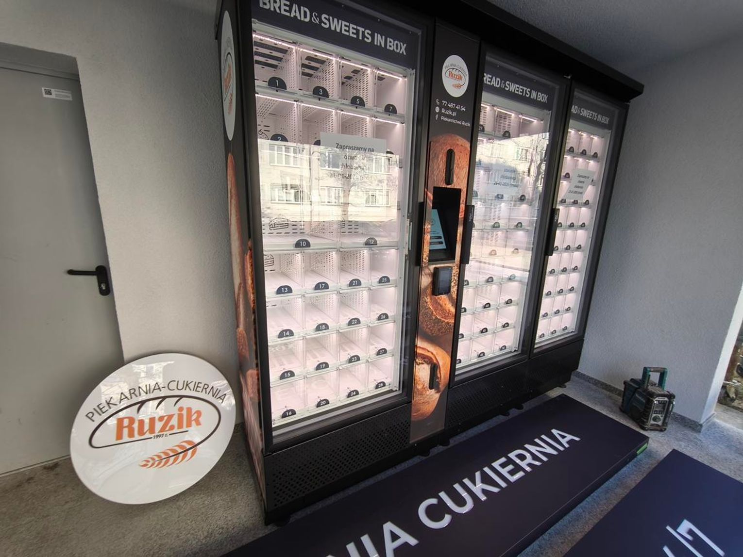 Za jakość pieczywa odpowiada Piekarnictwo Ruzik – lokalni rzemieślnicy, znani z tradycyjnych receptur i solidnego piekarniczego fachu. Jak podkreślają twórcy projektu, to „fachowcy od chleba, nie od bajek”, a w chlebomacie znajdziemy dokładnie to, czego oczekują klienci: sprawdzone smaki i świeżość. Urządzenie ma 91 skrytek – dwa moduły piekarnicze i jeden cukierniczy. Na miejscu będzie też możliwość zamawiania tortów z odbiorem. Automat pracuje 24 godziny na dobę, przez 7 dni w tygodniu!