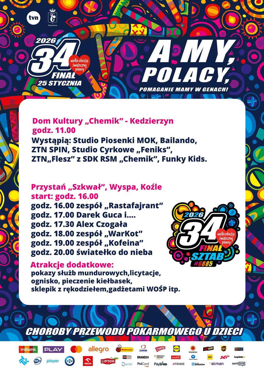 Wielka Orkiestra Świątecznej Pomocy od lat łączy ludzi wokół prostej idei pomagania, a efektem corocznych zbiórek jest doposażanie polskich placówek medycznych w nowoczesny sprzęt. Tegoroczny 34. Finał WOŚP odbywa się pod hasłem „Zdrowe brzuszki naszych dzieci” i koncentruje się na wsparciu diagnostyki oraz leczenia chorób przewodu pokarmowego u najmłodszych pacjentów.