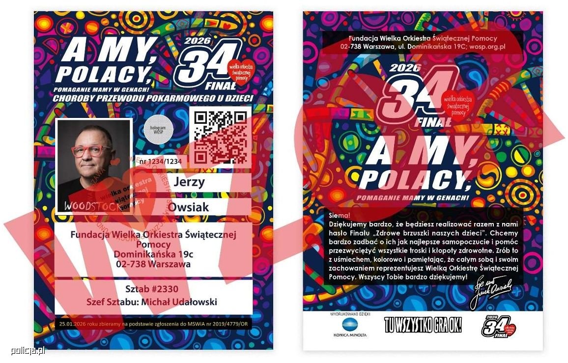 W niedzielę 25 stycznia odbędzie się 34. Finał Wielkiej Orkiestry Świątecznej Pomocy, która w tym roku gra na rzecz diagnostyki i leczenia chorób przewodu pokarmowego u dzieci. Nad porządkiem publicznym czuwać będzie kilka tysięcy funkcjonariuszy, dbających m.in. o bezpieczeństwo wolontariuszy i uczestników wydarzeń oraz kontrolujących legalność zbiórek.