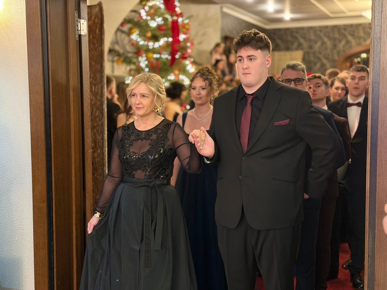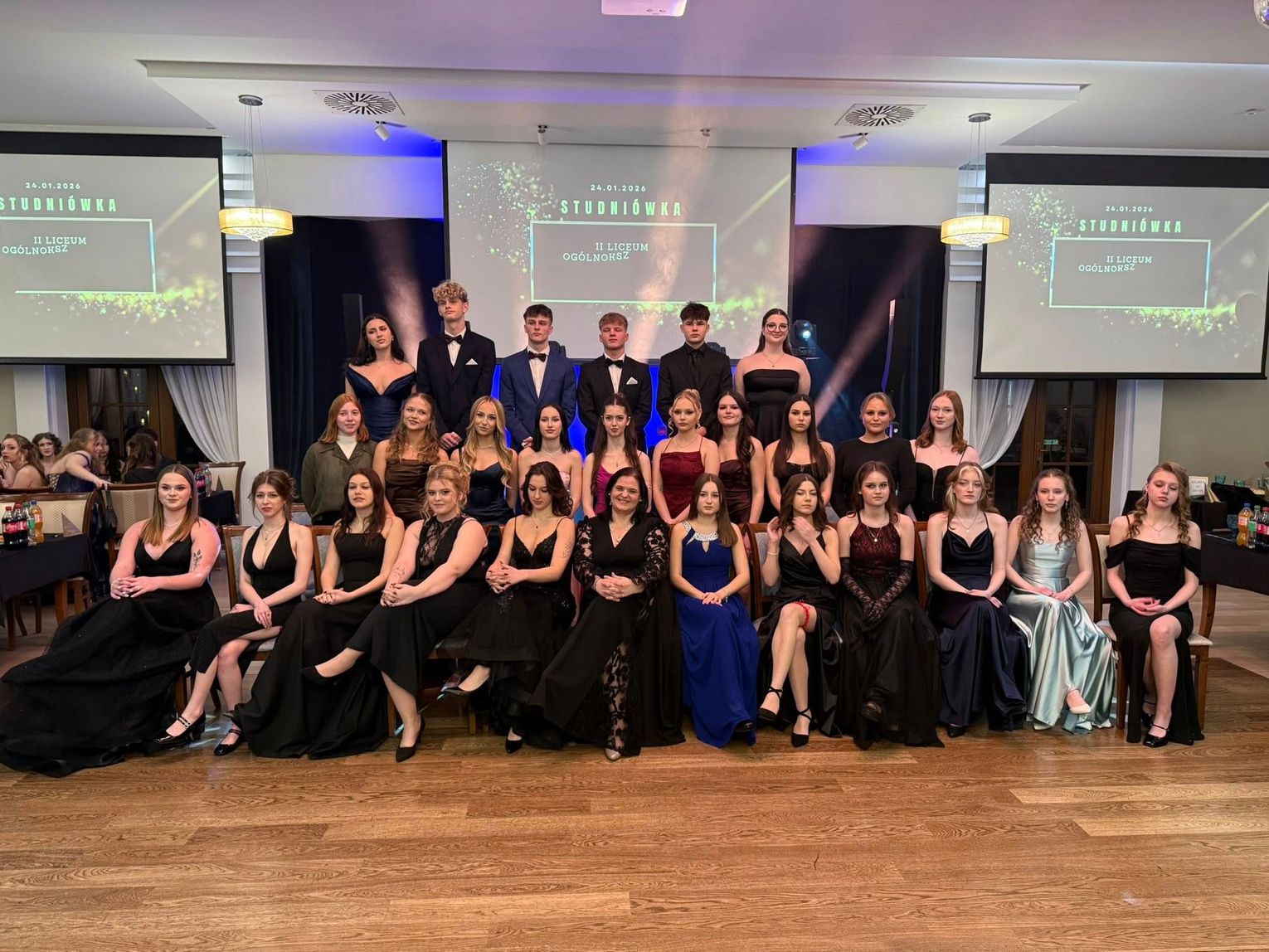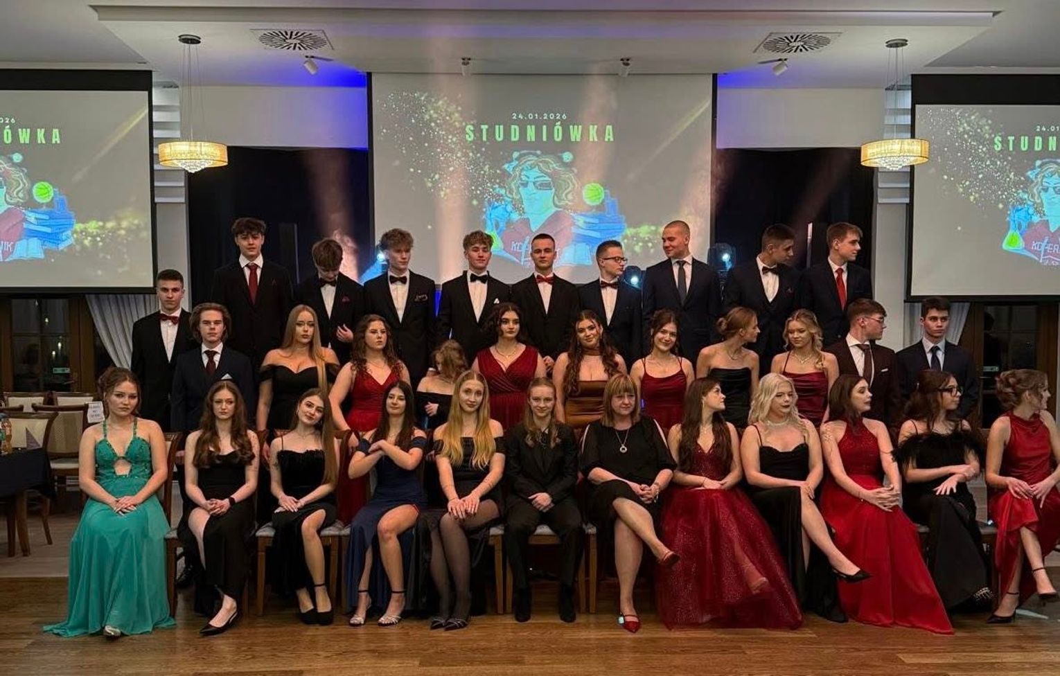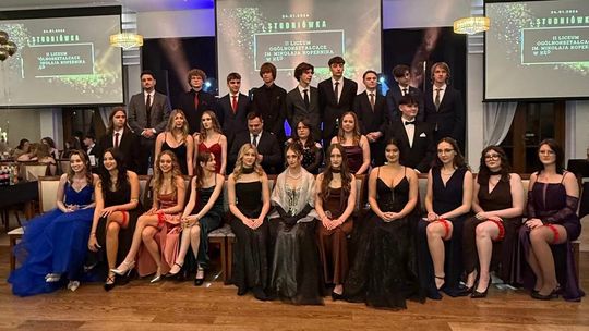 Zabawa odbyła się w eleganckich wnętrzach Dworku Komorno, który na ten wyjątkowy wieczór zamienił się w prawdziwą salę balową. Młodzież zachwyciła stylizacjami - panie postawiły na długie, wieczorowe suknie, a panowie na klasyczne garnitury i muchy lub krawaty. Całość prezentowała się niezwykle szykownie i z klasą. Nie zabrakło wspólnego poloneza, pamiątkowych zdjęć oraz zabawy do białego rana.
