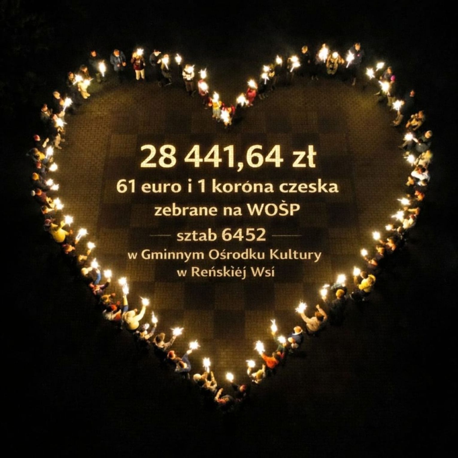 Mieszkańcy gminy i okolic po raz kolejny udowodnili, że potrafią jednoczyć się w imię dobra. Darczyńcy, wolontariusze i wszyscy ludzie o wielkich sercach stworzyli atmosferę pełną emocji i pozytywnej energii, która poniosła sztab do kolejnego historycznego wyniku – 28 441,64 zł, 61 euro i 1 korona czeska.