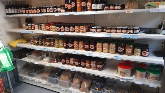 W ofercie znajdują się m.in. makarony własnej produkcji, jajka od „szczęśliwych kur”, a także szeroki wybór warzyw: ziemniaki, cebula, por, seler, marchew czy pietruszka. Nie brakuje również przetworów w słoikach - sałatek, soków, dżemów czy ogórków.
