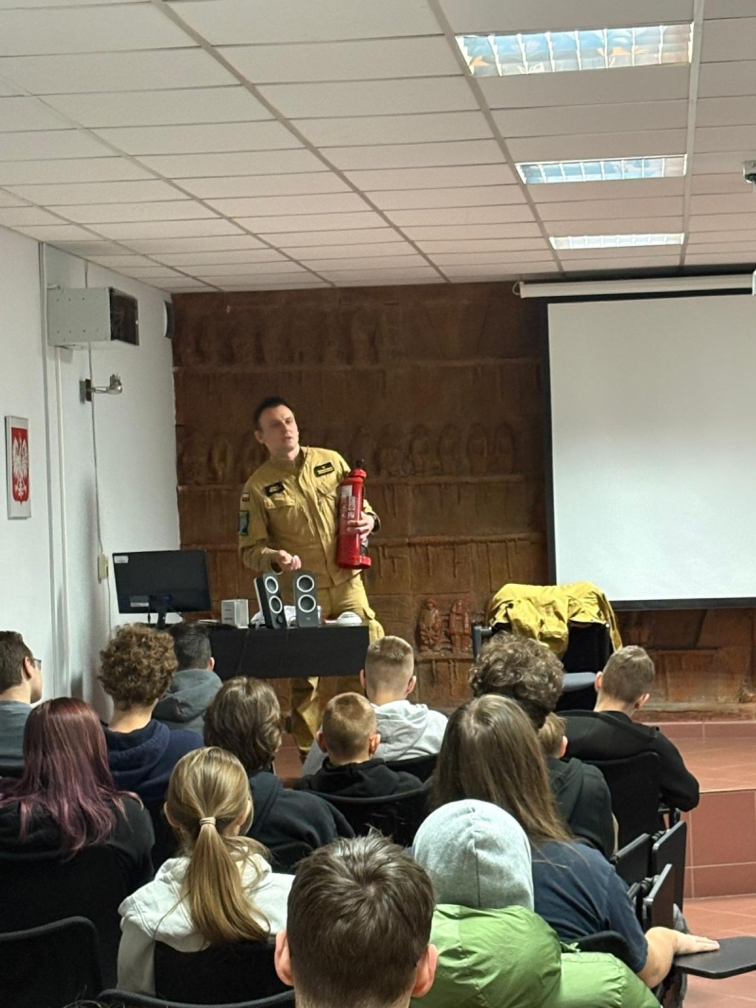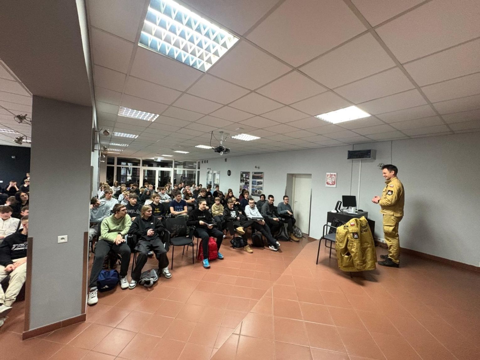 Oprócz części teoretycznej młodzież mogła usłyszeć przykłady z codziennej pracy strażaków, które najlepiej pokazują, jak ważna jest rozwaga i szybka reakcja. Uczniowie chętnie zadawali pytania, a strażacy odpowiadali na nie, rozwiewając wątpliwości i podkreślając, że bezpieczeństwo zaczyna się od świadomości.