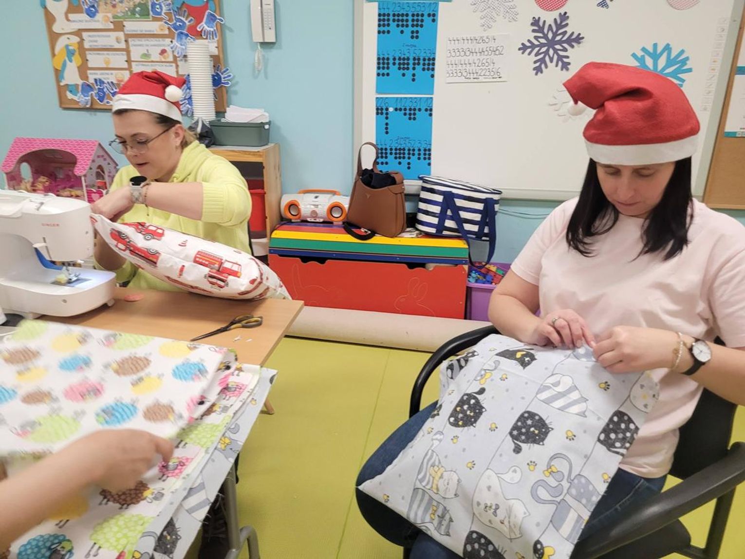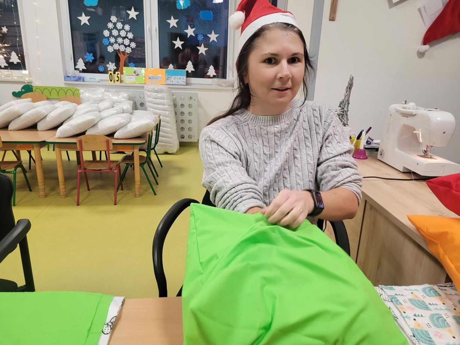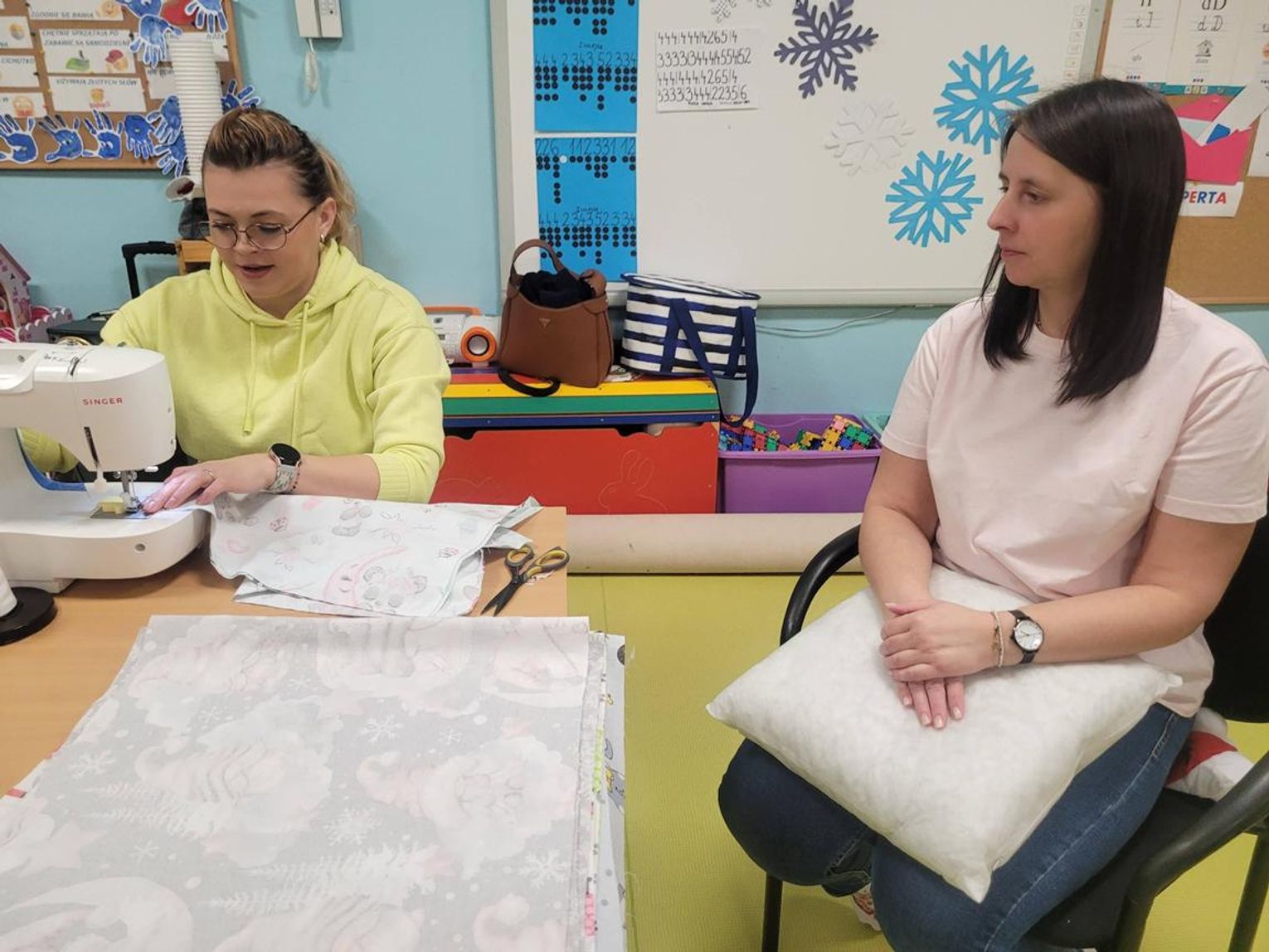 Podczas spotkania wolontariusze z ogromnym zaangażowaniem szyli kolorowe, miękkie poduszki. Każda z nich powstawała w świątecznej atmosferze, pełnej rozmów, uśmiechów i wzajemnej życzliwości. Uczestnicy podkreślali, że nawet drobny gest może mieć ogromne znaczenie, szczególnie dla tych, którzy na co dzień mierzą się z trudnymi doświadczeniami.