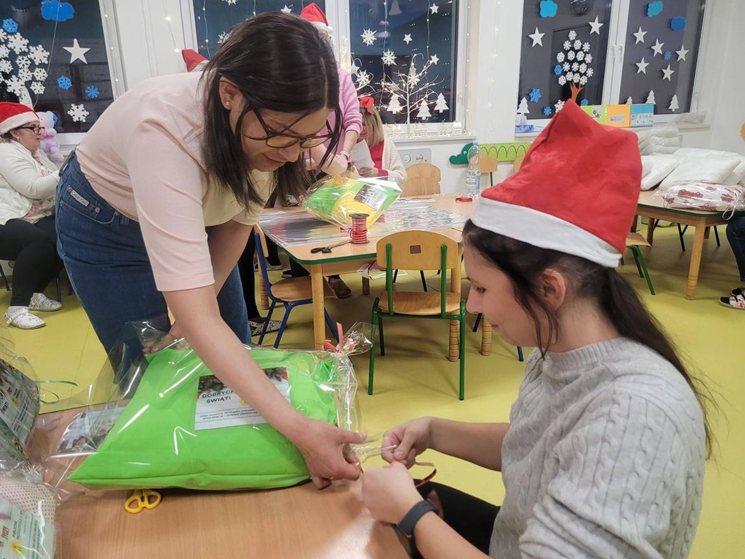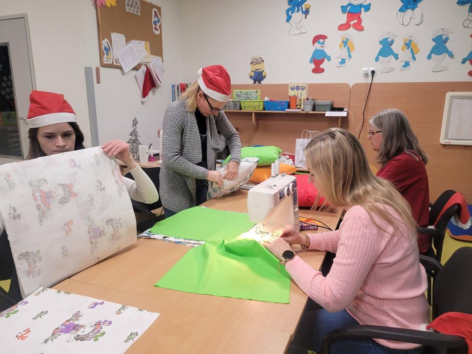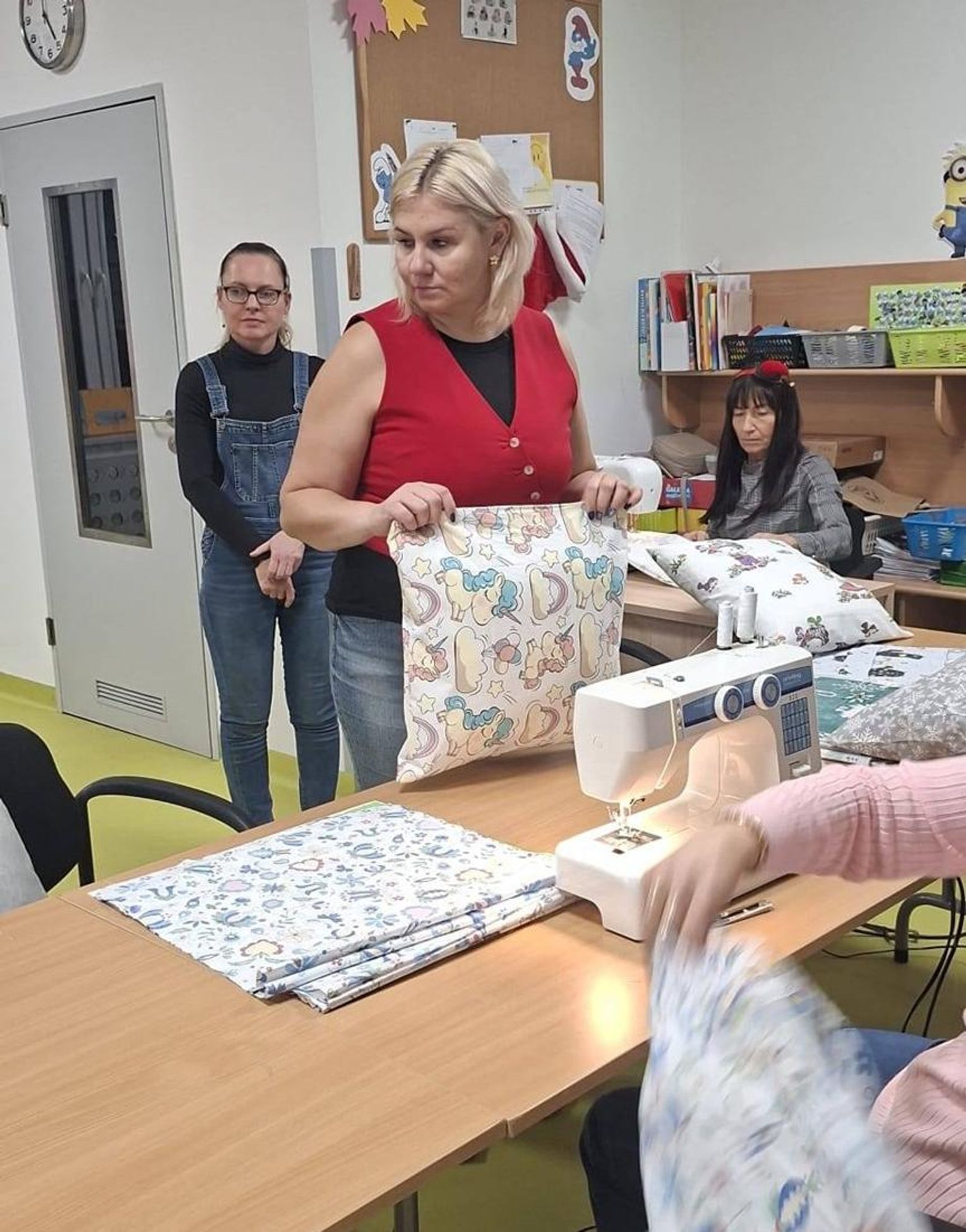 Podczas spotkania wolontariusze z ogromnym zaangażowaniem szyli kolorowe, miękkie poduszki. Każda z nich powstawała w świątecznej atmosferze, pełnej rozmów, uśmiechów i wzajemnej życzliwości. Uczestnicy podkreślali, że nawet drobny gest może mieć ogromne znaczenie, szczególnie dla tych, którzy na co dzień mierzą się z trudnymi doświadczeniami.