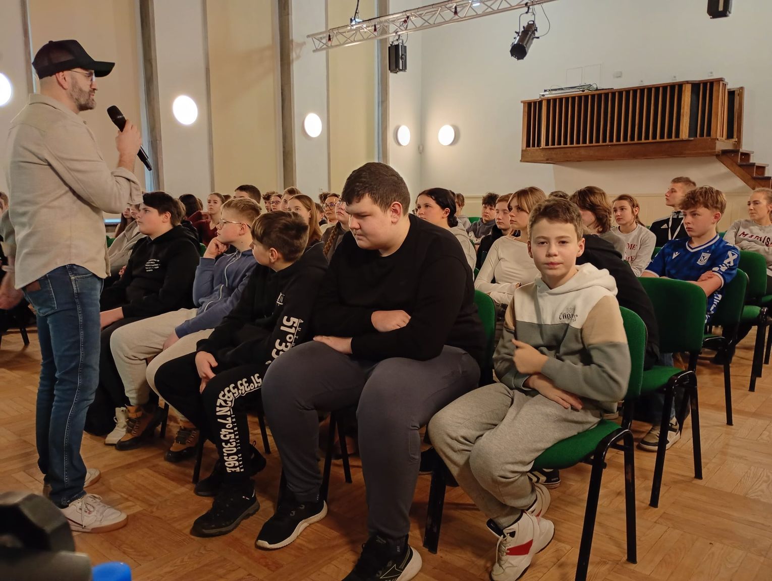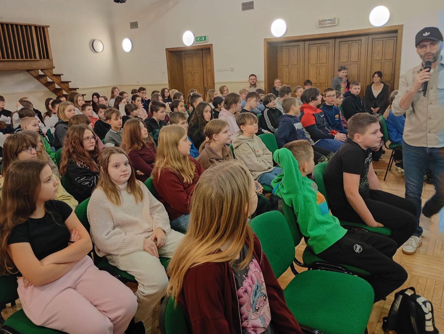 - Podczas spotkania, poprzez krótkie, obrazowe scenki z aktywnym udziałem uczniów, prelegent poruszał istotne zagadnienia, takie jak wyjątkowość każdego człowieka, szacunek wobec rodziców, szkodliwość używek oraz negatywne skutki hejtu rówieśniczego. Wskazywał na wartość czytania. Zwracał również uwagę na znaczenie szukania pomocy i wsparcia w sytuacjach trudnych, podkreślając, że proszenie o pomoc jest oznaką siły, a nie słabości. Wydarzenie zostało wzbogacone elementami muzyki hip-hopowej – mówi dyrektor PSP nr 12 Renata Mańkowska.
