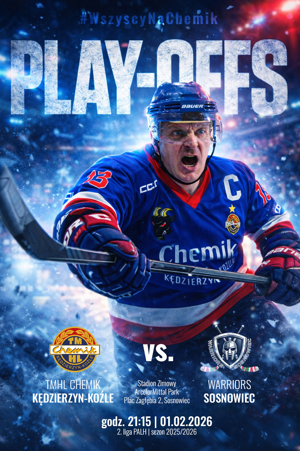 Wczoraj (1 lutego) na lód wyjechało 11 wojowników. Dwie pełne formacje. To była inna krew, inna energia. Mecz zaczął się od wysokiego napięcia. Już w 5. minucie kapitan Chemika, Marek Stochaj, wylądował na ławce kar za uderzenie kijem. W powietrzu wisiało pytanie: czy demony sprzed tygodnia wrócą? Nic z tych rzeczy. Osłabiony Chemik przetrwał napór, a potem sam wyprowadził cios.