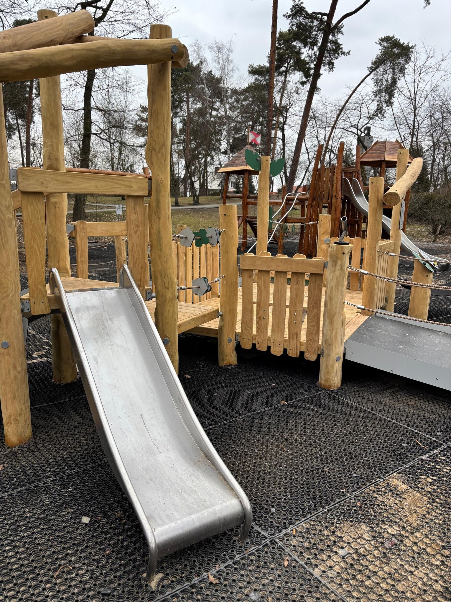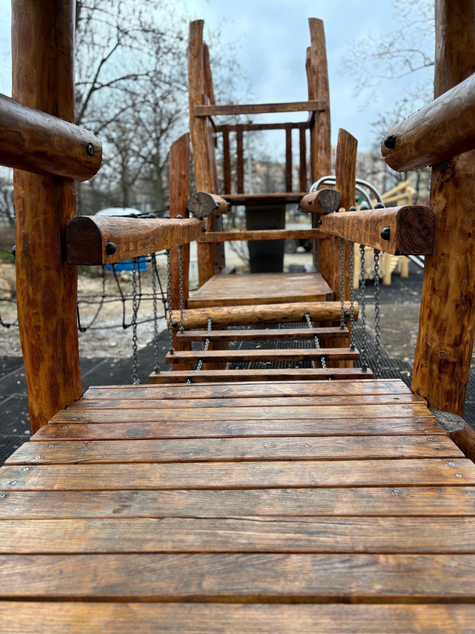 Odnowiono także istniejący duży zestaw zabawowy oraz bujak, a pod wszystkimi urządzeniami ułożono bezpieczną nawierzchnię z maty przerostowej.