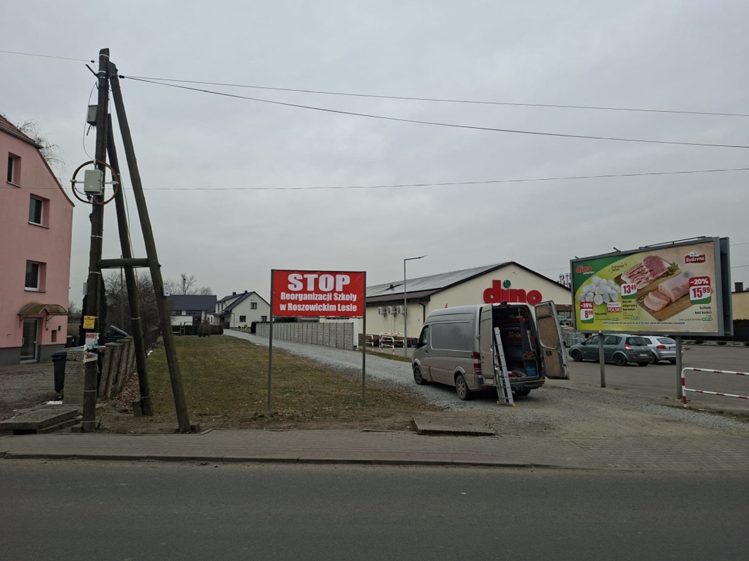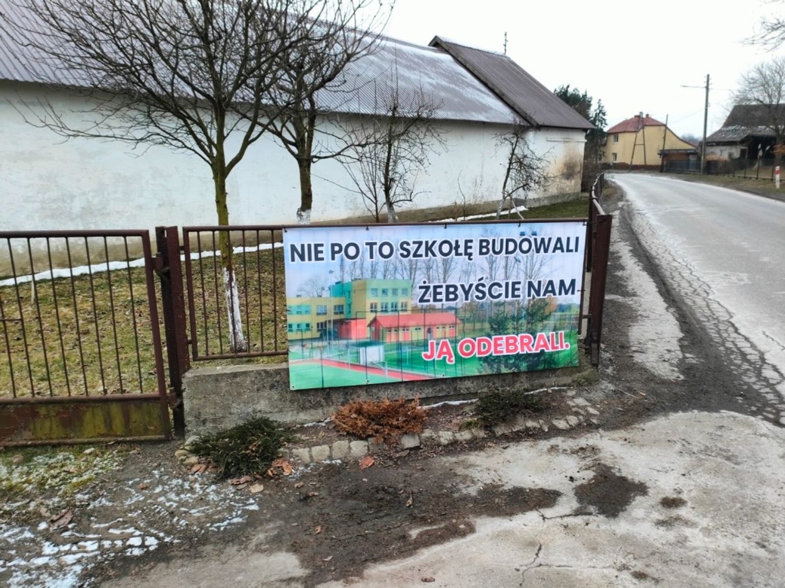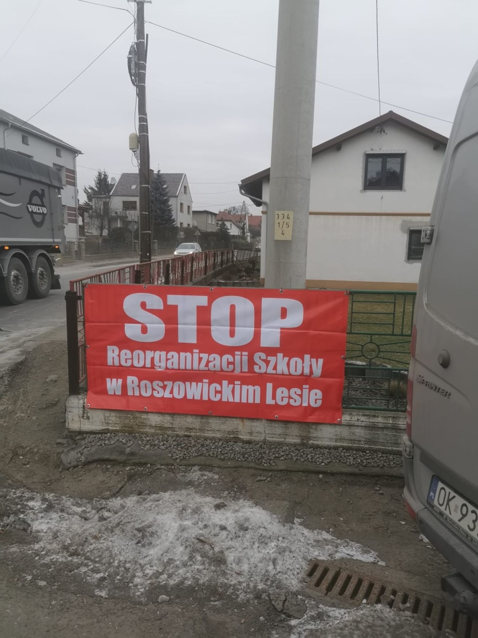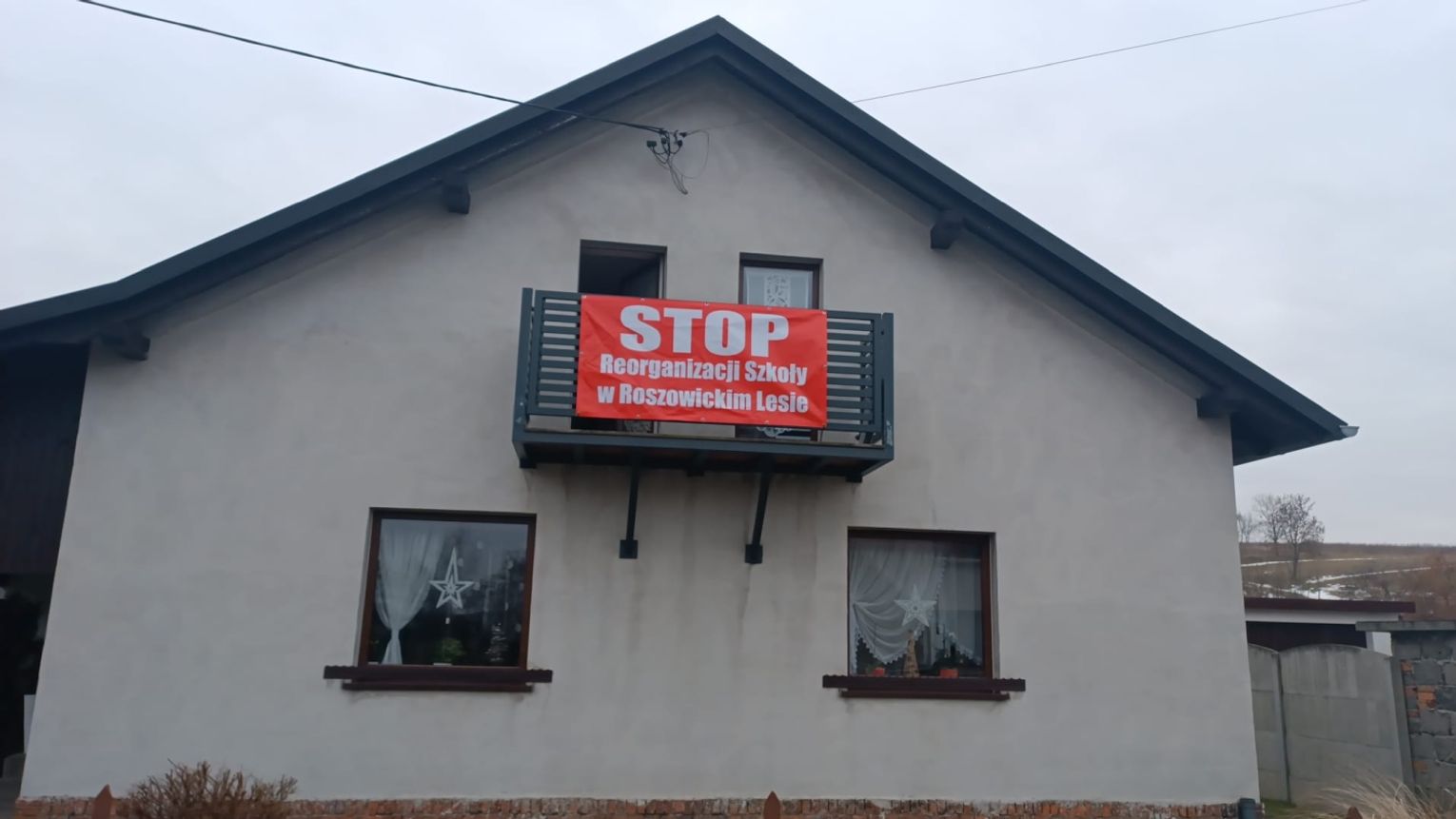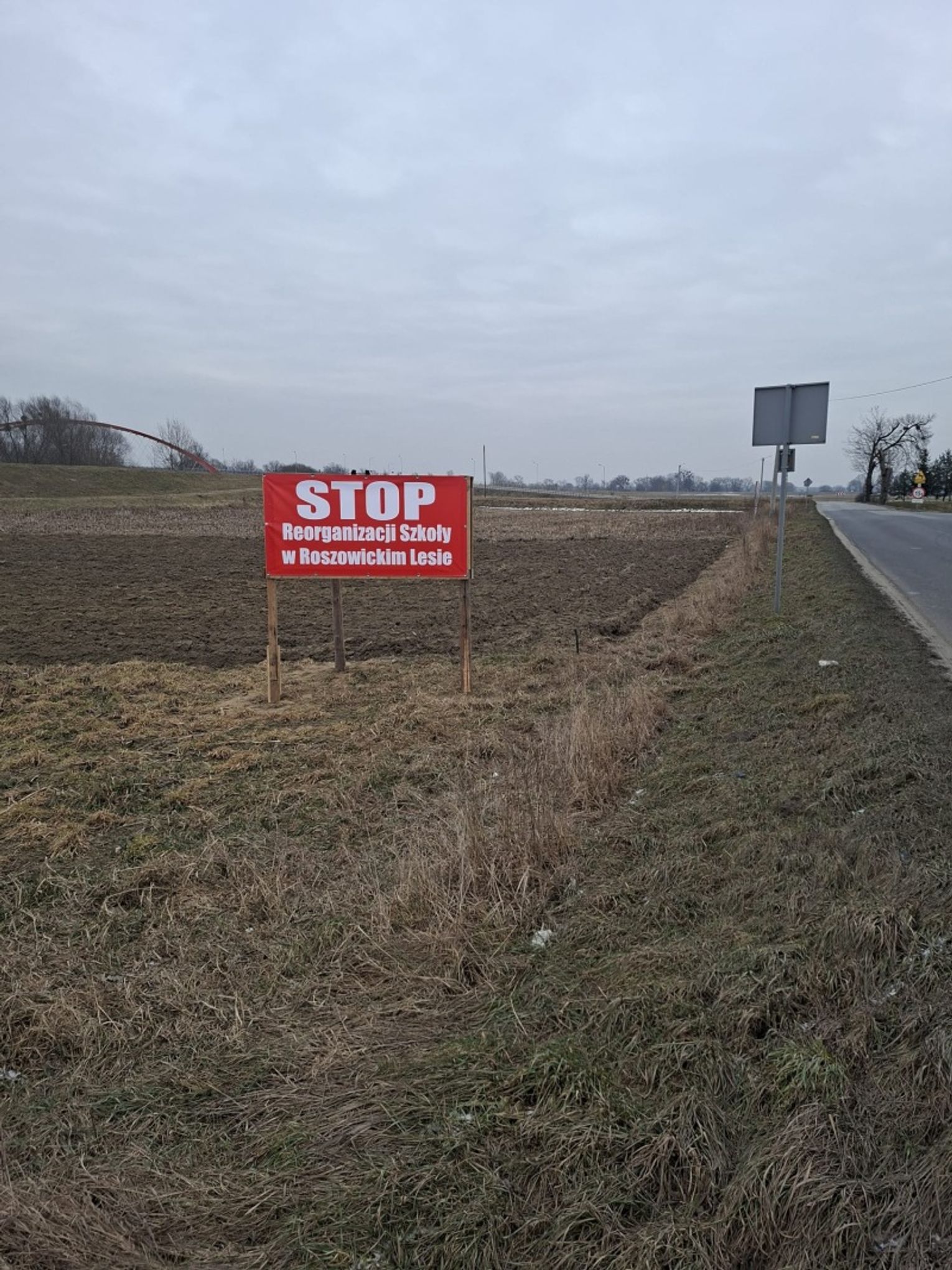 Kolejne banery zawisły w Łanach, Błażejowicach, Dzielnicy, Steblowie, w rejonie nazywanym lokalnie „Bełkiem”, a nawet w centralnej części Ciska – dokładnie naprzeciw urzędu gminy. Tak szeroka obecność haseł pokazuje, że choć protest dotyczy jednej konkretnej szkoły – tej w Roszowickim Lesie – to mieszkańcy wielu sołectw solidaryzują się z rodzicami i wspierają ich sprzeciw wobec planowanej reorganizacji. To wyraźny sygnał, że sprawa tej placówki stała się tematem ważnym dla całej gminy, nawet jeśli formalnie dotyczy tylko jednego miejsca.