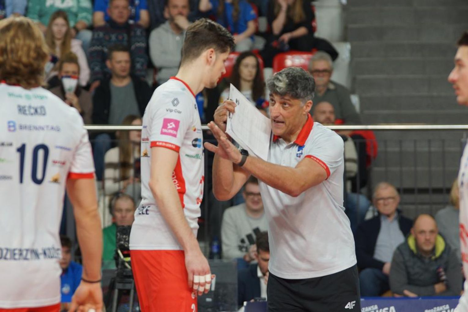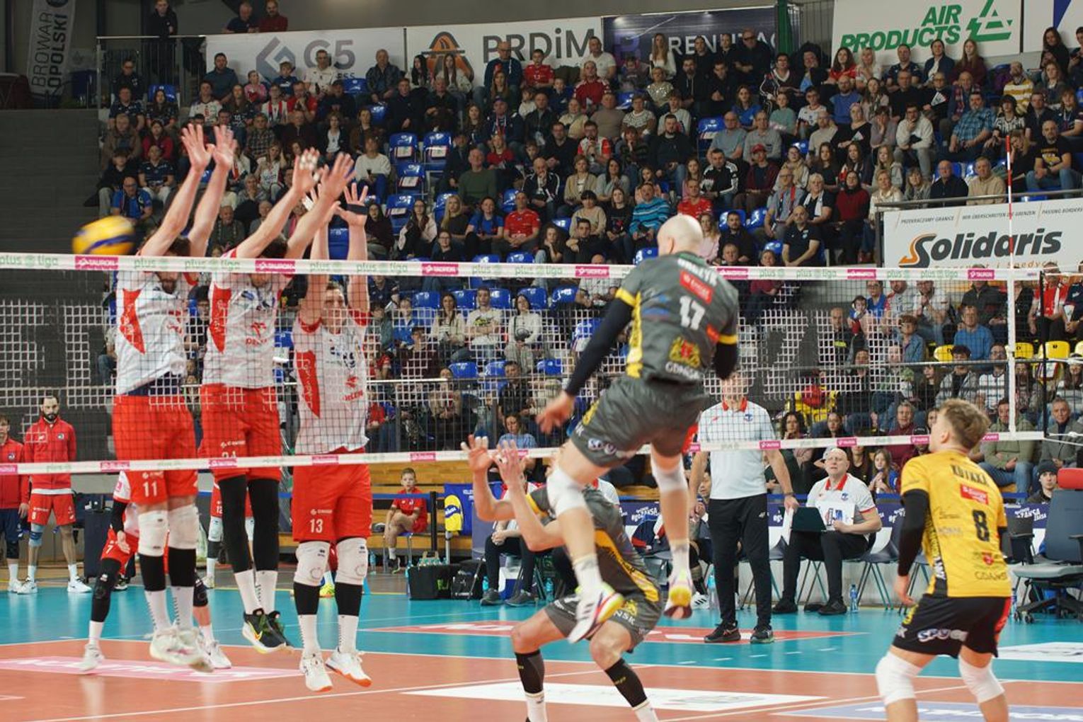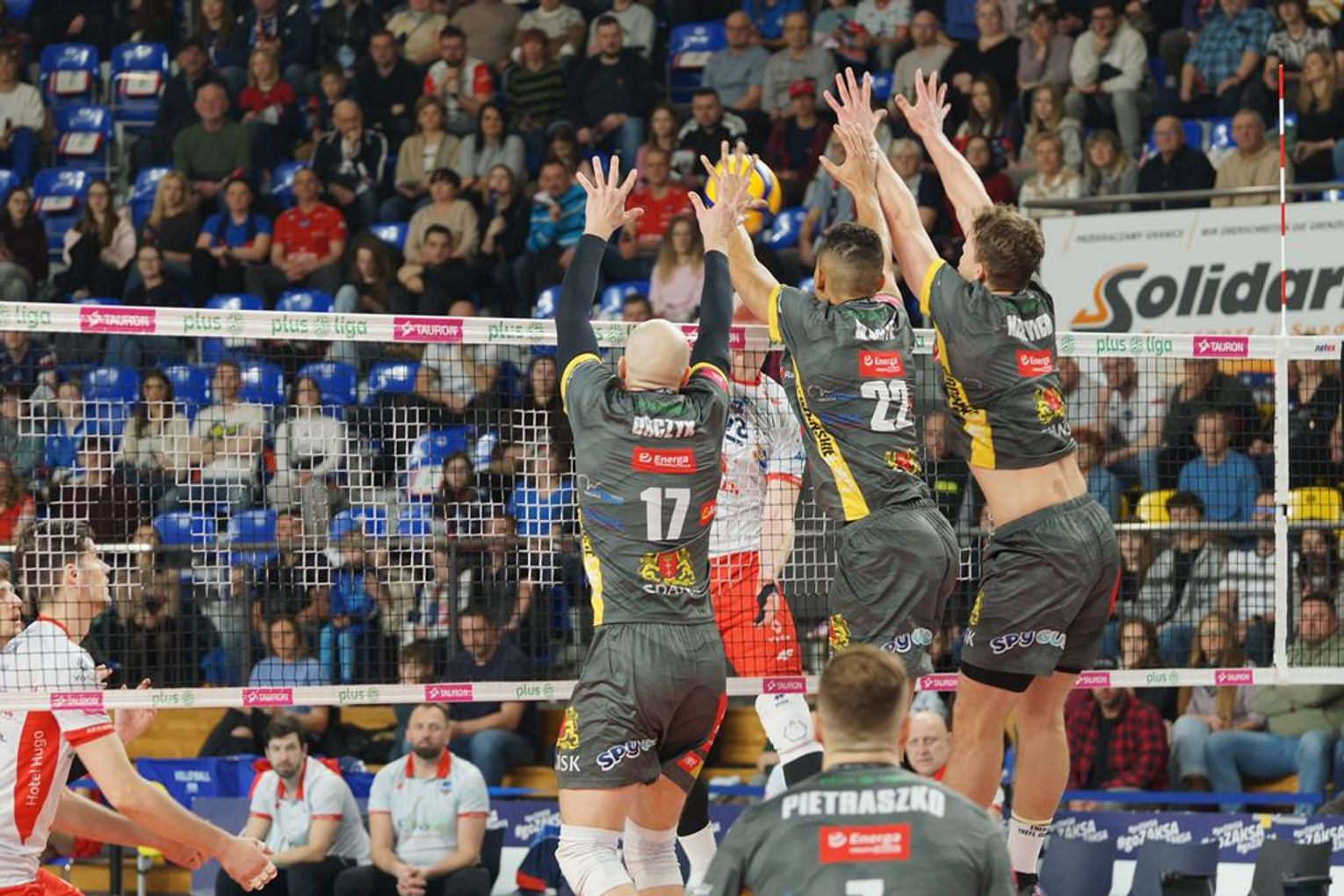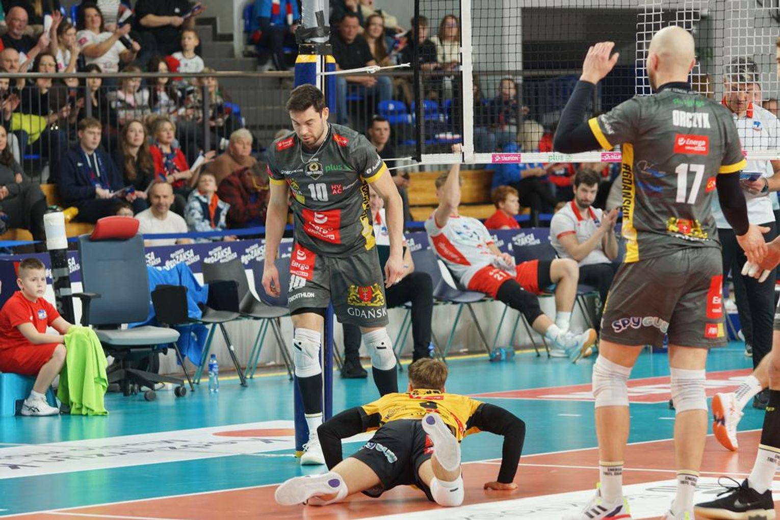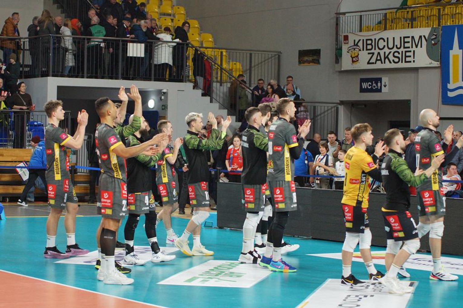 Sobotni mecz w hali im. Kazimierza Pietrzyka lepiej rozpoczęli gospodarze, którzy wygrali kilka akcji z rzędu i odskoczyli na trzy punkty (6:3). Siatkarze z Pomorza przetrwali napór gospodarzy, zaczęli dobrze bronić i skutecznie kontrować. Po asie serwisowym Aleksieja Nasewicza wyszli na prowadzenie 9:8. Od tego momentu gra się wyrównała – raz jeden, raz drugi zespół uzyskiwał minimalną przewagę. W pewnym momencie różnicę zrobiły dwa asy serwisowe Kamila Rychlickiego, po których kędzierzynianie odskoczyli na 20:17. Rywale popełnili błędy w ataku i po chwili było już 23:18 dla ZAKSY. Decydujący punkt zdobył Igor Grobelny.