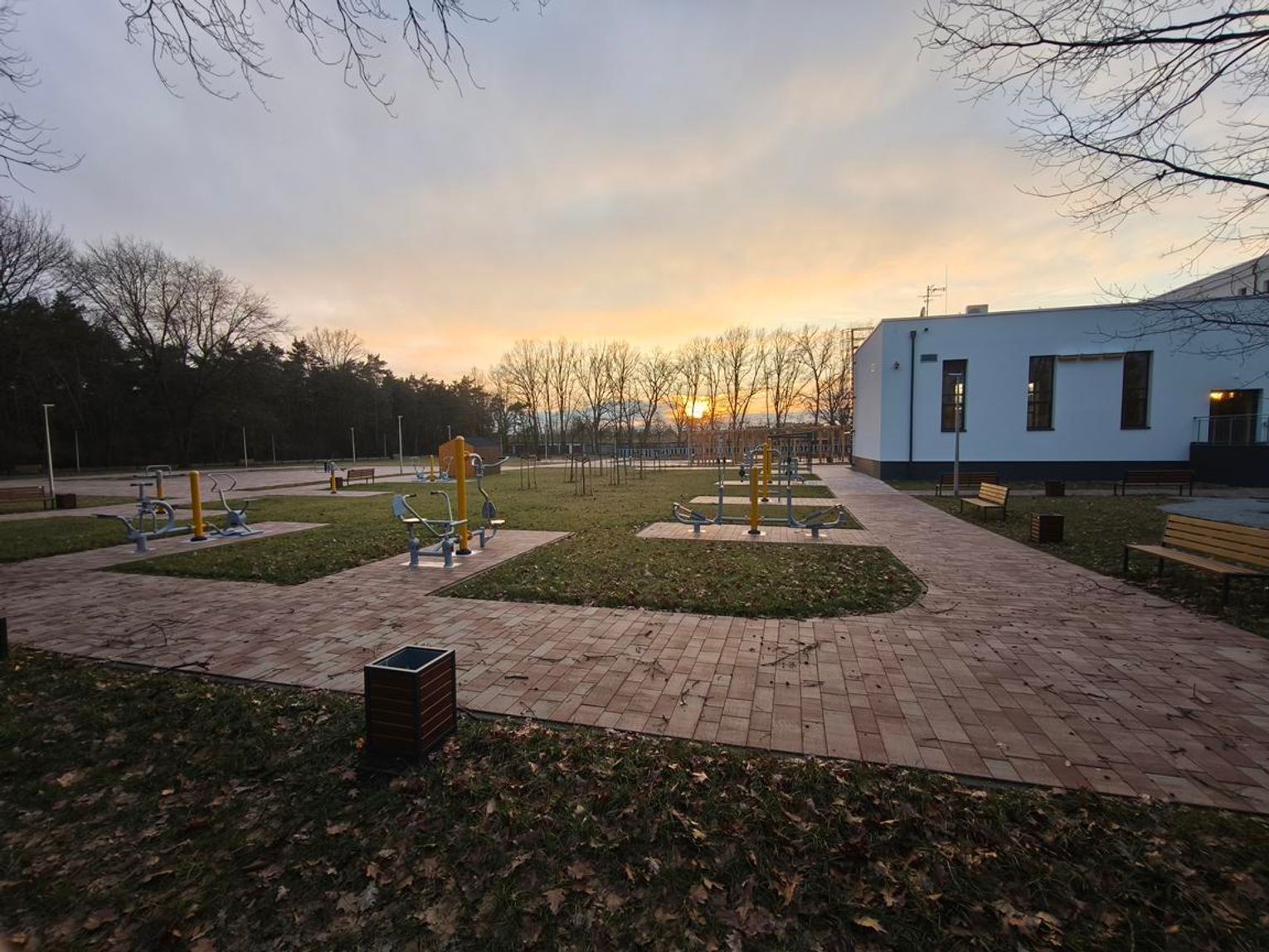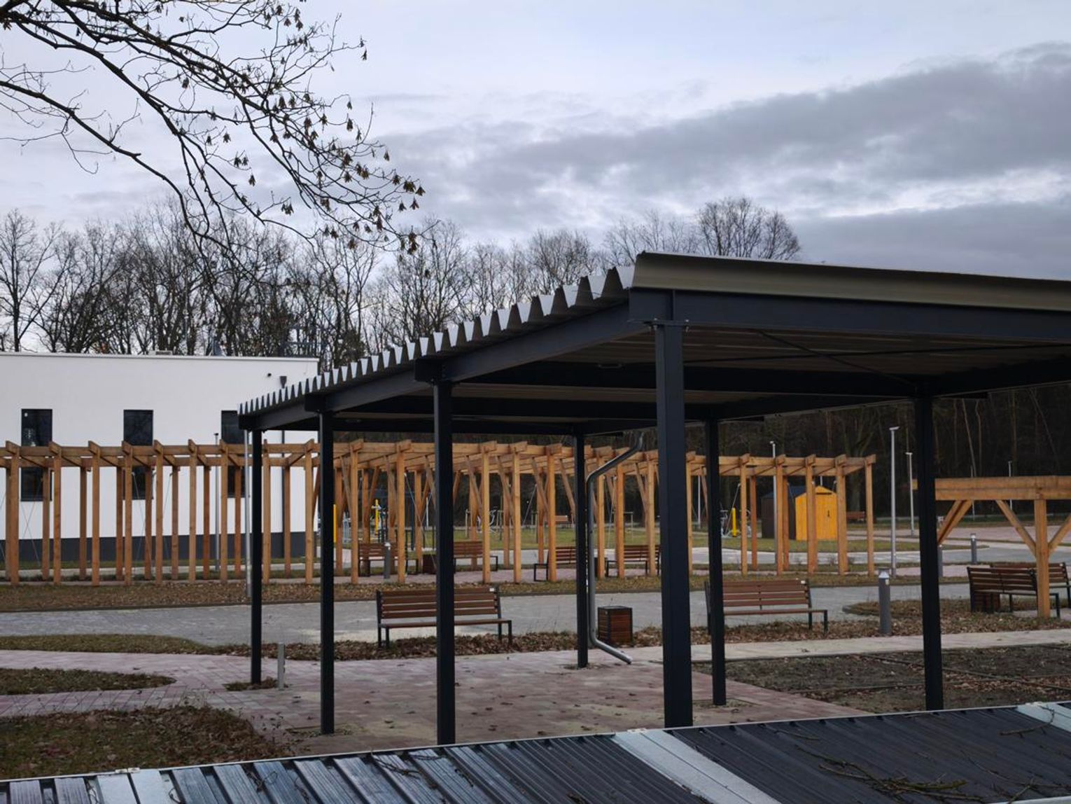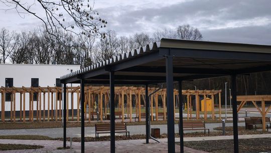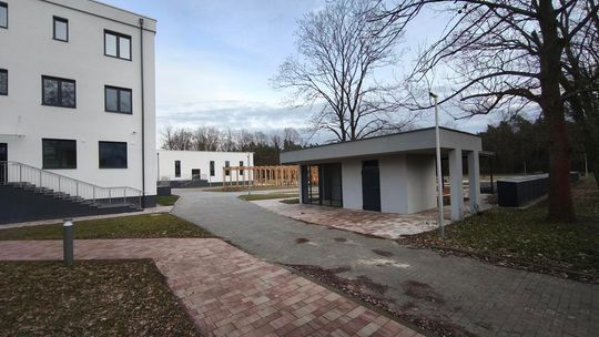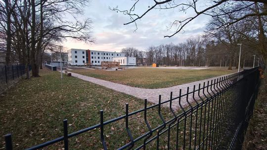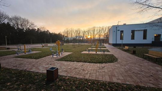 Wybraliśmy się na miejsce i faktycznie inwestycja wygląda na ukończoną. Budynek prezentuje się jak nowy, a teren wokół dawnej szkoły został ładnie zagospodarowany. Wytyczono alejki, postawiono latarnie, są ławki, wiaty, mały plac zabaw i siłownia plenerowa. Żadne prace na zewnątrz nie były już prowadzone. O świecące latarnie zapytaliśmy w magistracie.