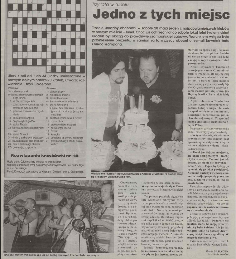 Ania: Bywam w Tunelu od czasu jego otwarcia. Czasami trafiam tu rzadziej, ale najczęściej jestem tu co weekend. Uważam, że jest to bardzo fajne miejsce i ludzie czują się tu naprawdę fajnie. Organizowane są także koncerty gwiazd polskiej sceny, jak Hey czy Kazika. Za to także lubię Tunel.