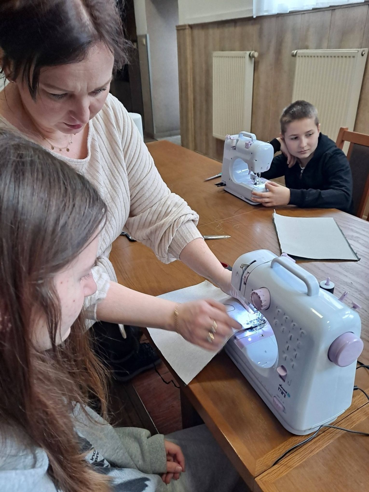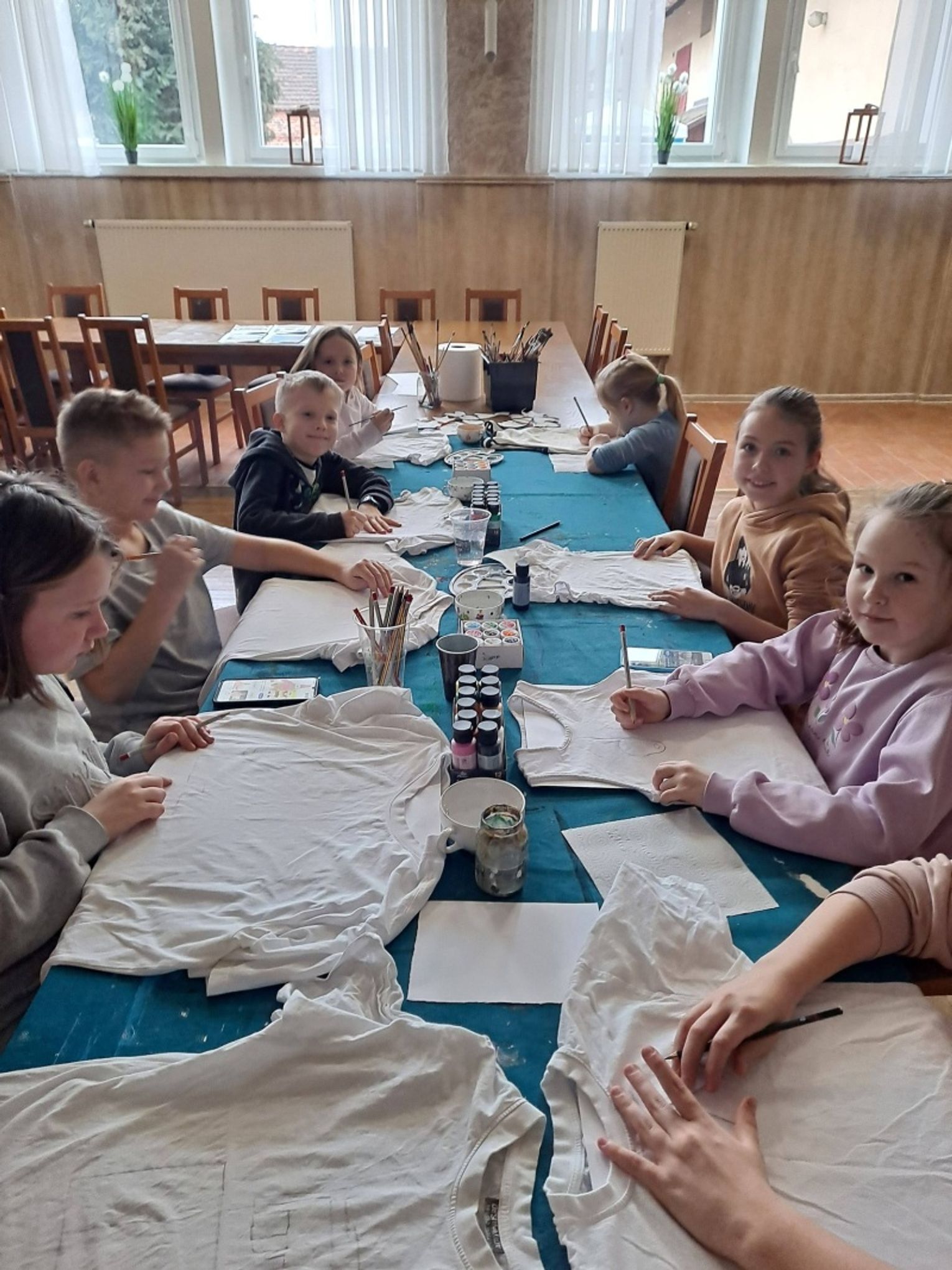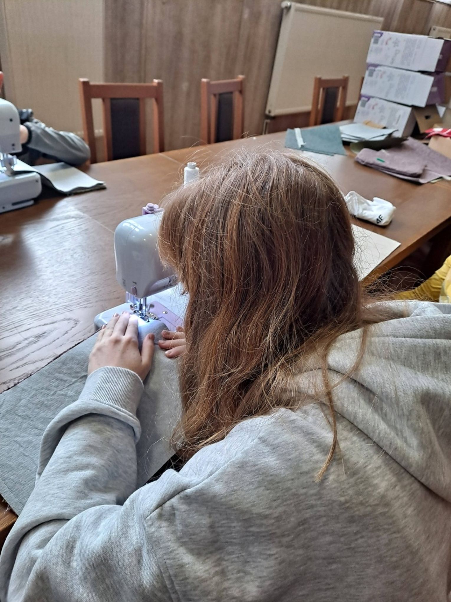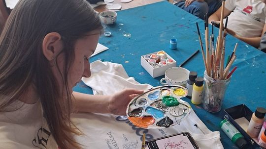 Uczestnicy najpierw zaprojektowali swoje koszulki, a następnie uszyli na maszynach praktyczne saszetki, co dla wielu z nich było pierwszym kontaktem z szyciem i pracą z materiałem. Zajęcia zakończyły się wspólną zabawą, która pozwoliła dzieciom rozładować energię i spędzić czas w radosnej atmosferze.
