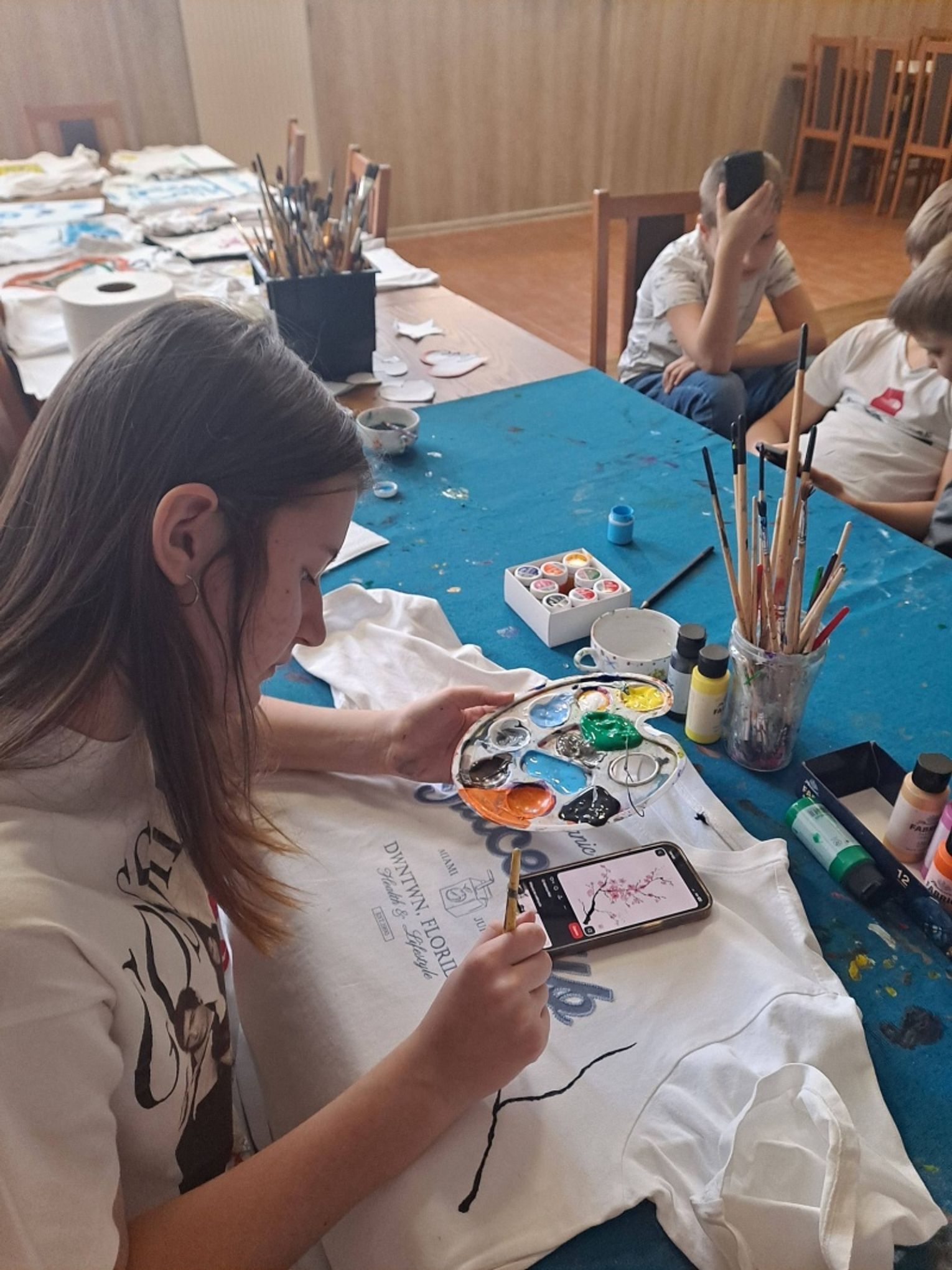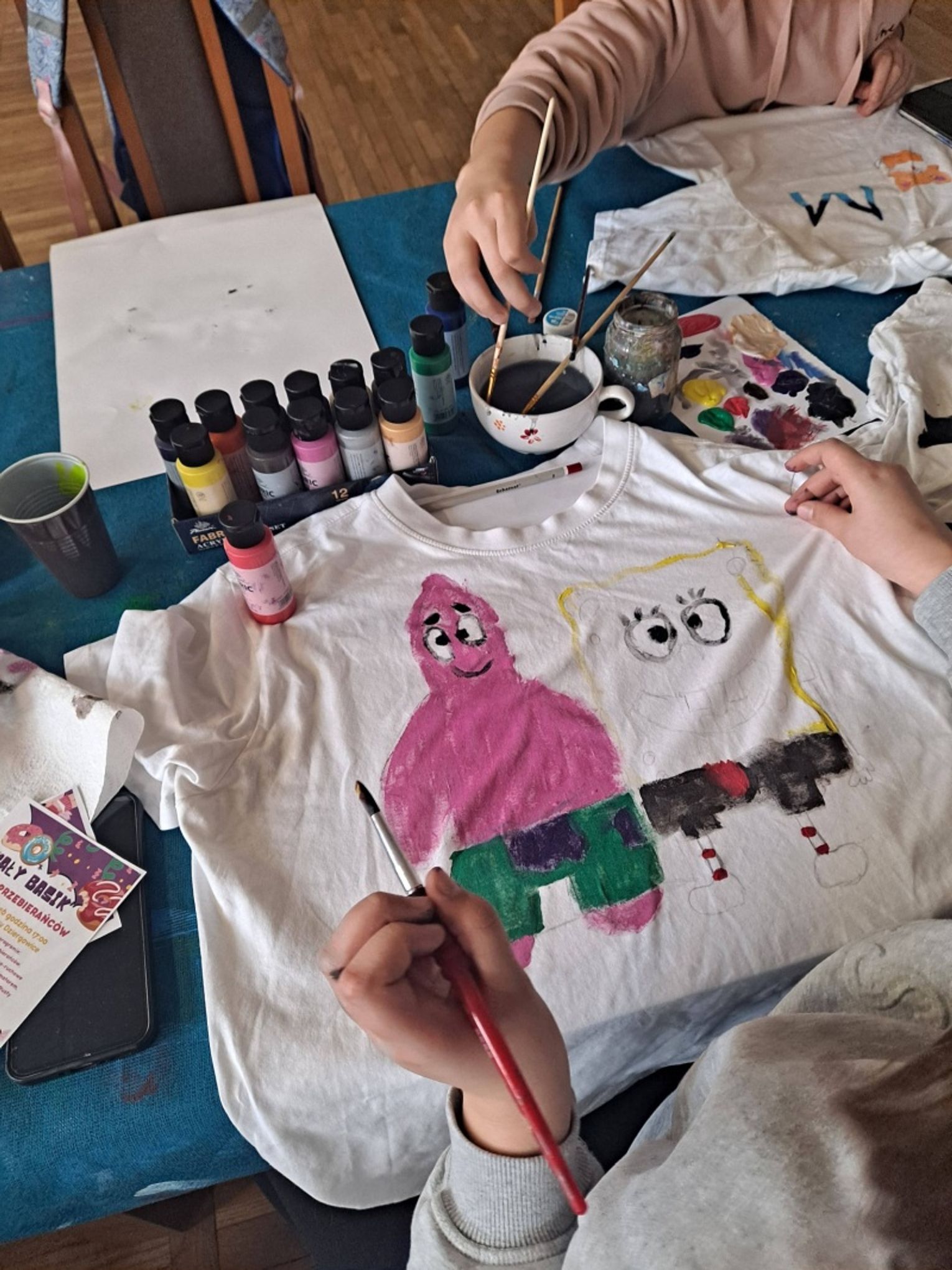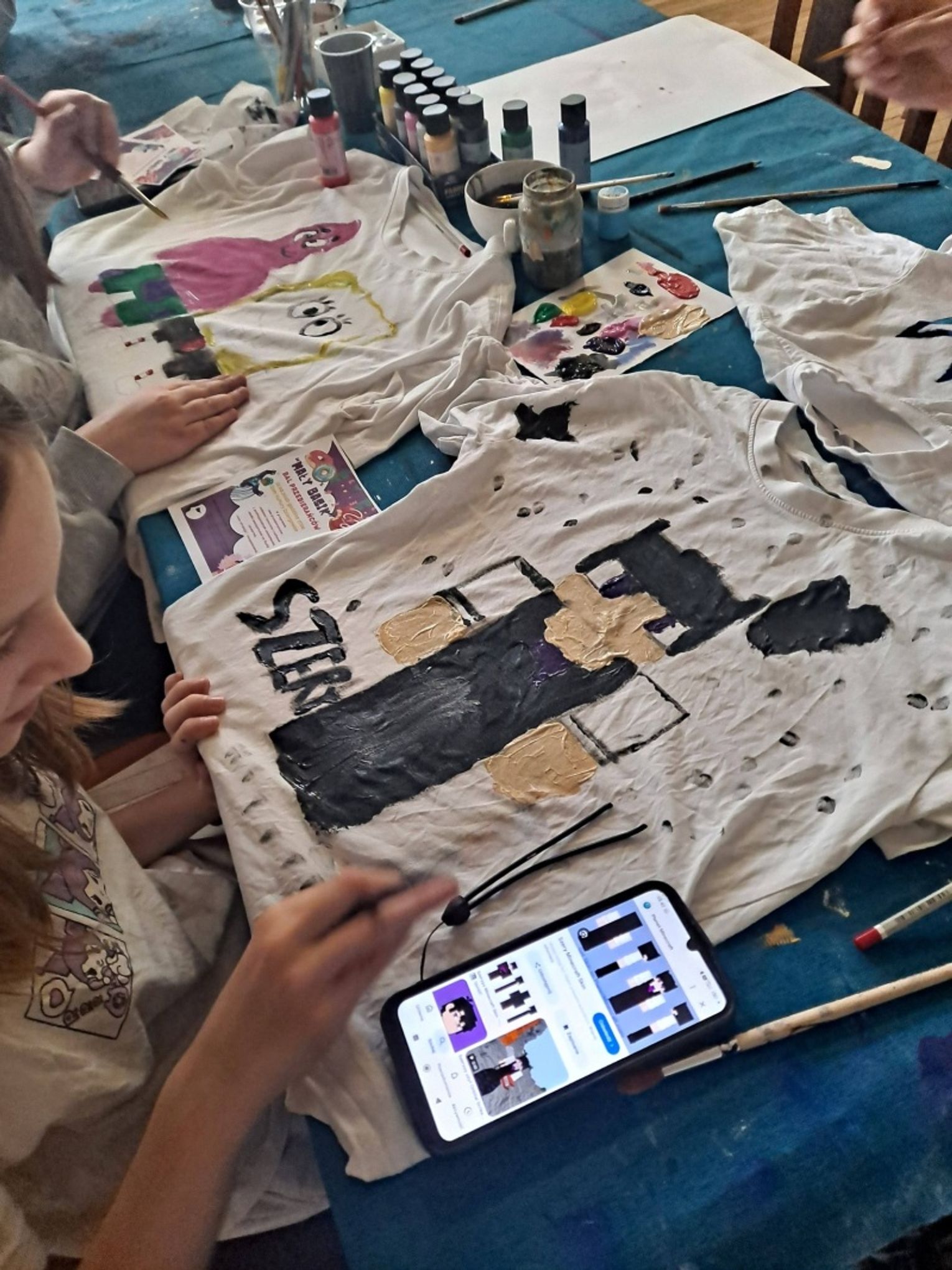 Uczestnicy najpierw zaprojektowali swoje koszulki, a następnie uszyli na maszynach praktyczne saszetki, co dla wielu z nich było pierwszym kontaktem z szyciem i pracą z materiałem. Zajęcia zakończyły się wspólną zabawą, która pozwoliła dzieciom rozładować energię i spędzić czas w radosnej atmosferze.