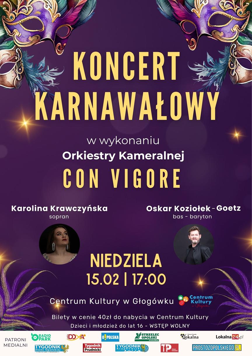 Con Vigore to orkiestra z Kędzierzyna-Koźla, która od lat koncertuje i zdobywa wierną publiczność dzięki różnorodnemu repertuarowi oraz współpracy ze znakomitymi solistami. Orkiestrą dyryguje Gotfryd Włodarz, który wprowadzi publiczność w wyjątkowy nastrój i sprawi, że ten karnawałowy wieczór na długo pozostanie w pamięci słuchaczy.