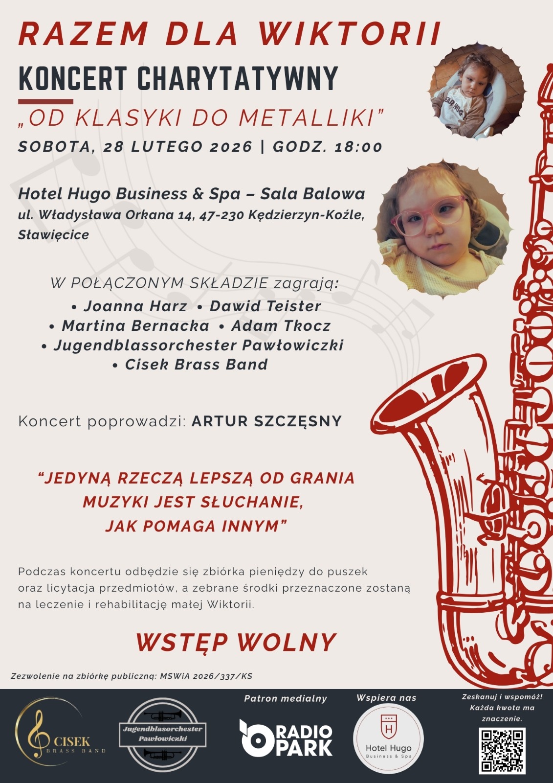 Podczas wydarzenia prowadzona będzie zbiórka pieniędzy do puszek oraz licytacja przedmiotów, a wszystkie zebrane środki zostaną przeznaczone na leczenie i rehabilitację małej Wiktorii. Organizatorzy podkreślają, że każdy gest wsparcia ma znaczenie, a udział w koncercie to okazja, by połączyć przyjemność słuchania muzyki z realną pomocą.
