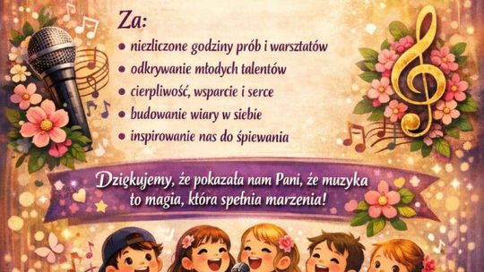 Kulminacją wieczoru było wykonanie autorskiej piosenki przygotowanej specjalnie na tę okazję. Wspólny śpiew był symbolicznym podziękowaniem za lata pracy i za wszystkie chwile, które połączyły młodych wokalistów z ich instruktorką.