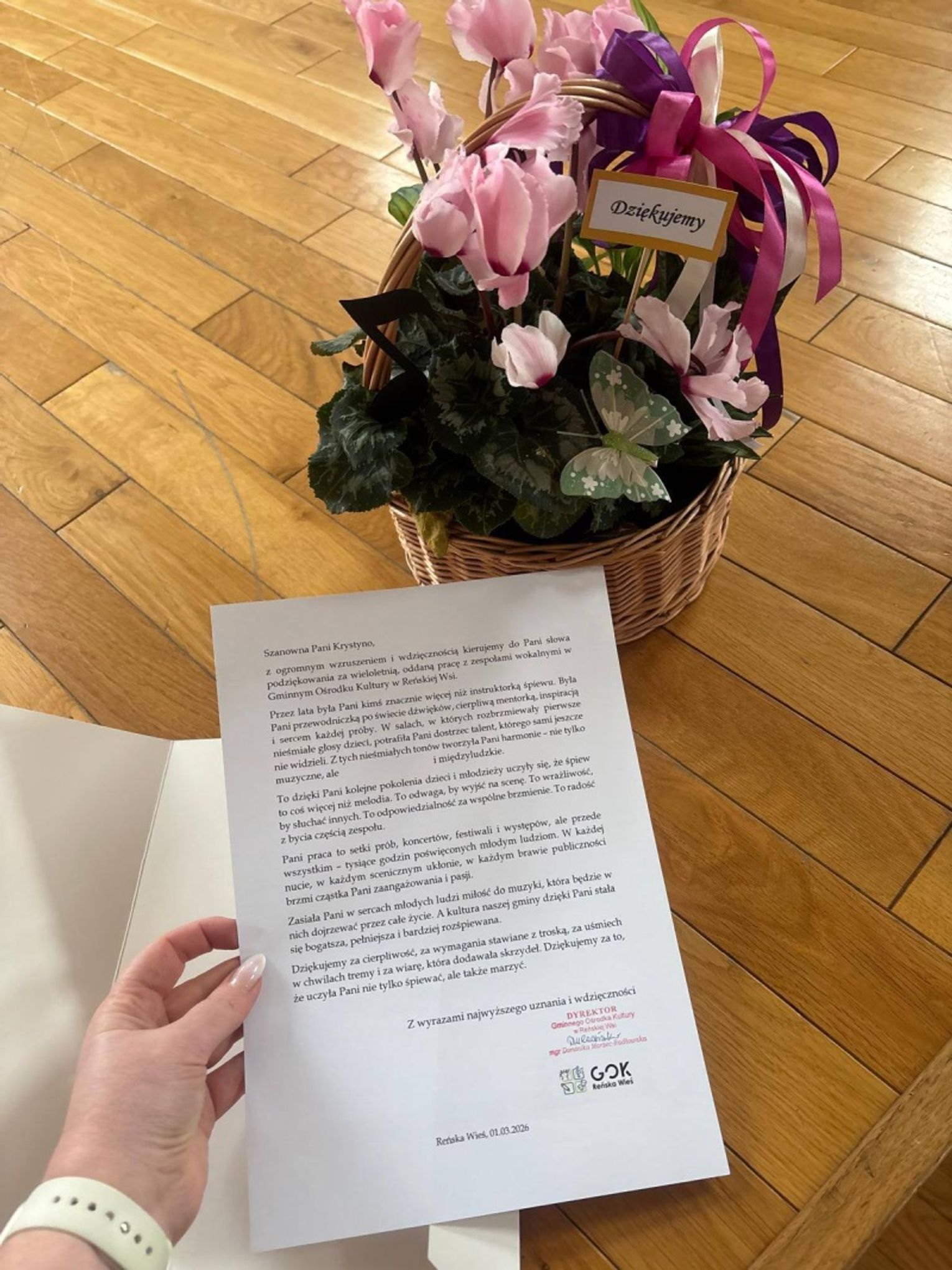 W imieniu ośrodka kultury głos zabrała jego dyrektor Dominika Marzec‑Radłowska, podkreślając profesjonalizm, oddanie i energię, jaką Krystyna Przezdzienk‑Grzybek wnosiła w pracę z dziećmi i młodzieżą. Słowa uznania skierował również Jan Domek – inicjator powstania grup wokalnych w gminie, który przypomniał, jak ważną rolę odgrywa muzyka w budowaniu lokalnej wspólnoty.