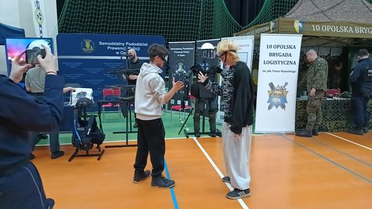 W dniu dzisiejszym odbywa się 3. edycja "Spotkania z Mundurem", na której nie zabrakło stanowisk Komendy Powiatowej Policji w Kędzierzynie-Koźlu, a także Samodzielnego Pododdziału Prewencji Policji w Opolu, bo oni działają trochę inaczej niż taka zwykła prewencja. Zabezpieczają mecze, a także inne imprezy masowe. Jest z nami policjant ruchu drogowego, który pokazuje sprzęt wykorzystywany w swojej pracy, między innymi "suszarka", będąca źródłem stresu u wielu kierowców. Jest też z nami technik kryminalny, który pokazuje, jak ściągamy odciski palców. Oczywiście, jeśli ktoś jest zainteresowany pracą w naszej formacji, to instruujemy jak można się dostać do takiej służby - przekazała mł. asp. Klaudia Tokarczyk, rzecznik prasowy Komendy Powiatowej Policji w Kędzierzynie-Koźlu.