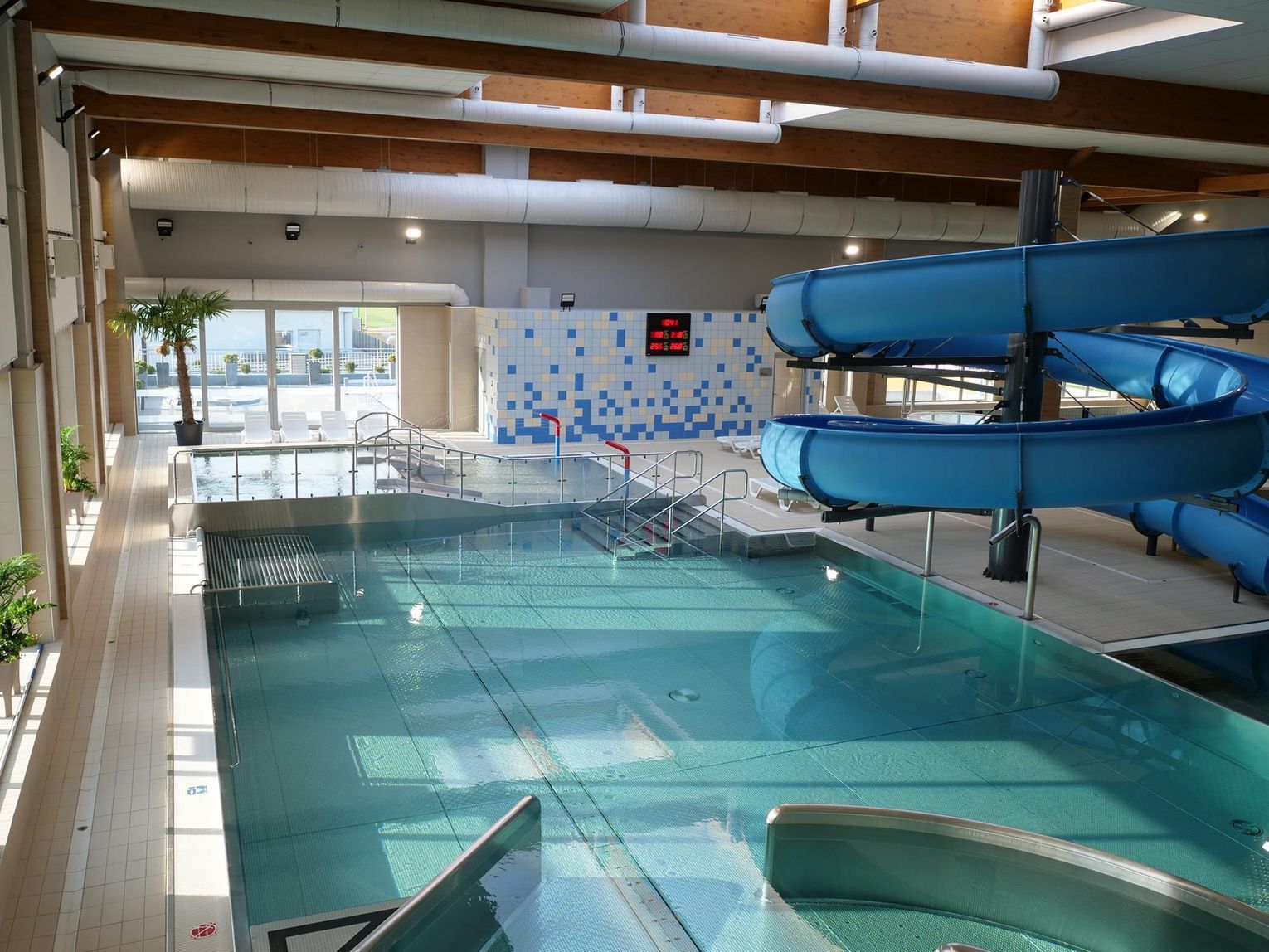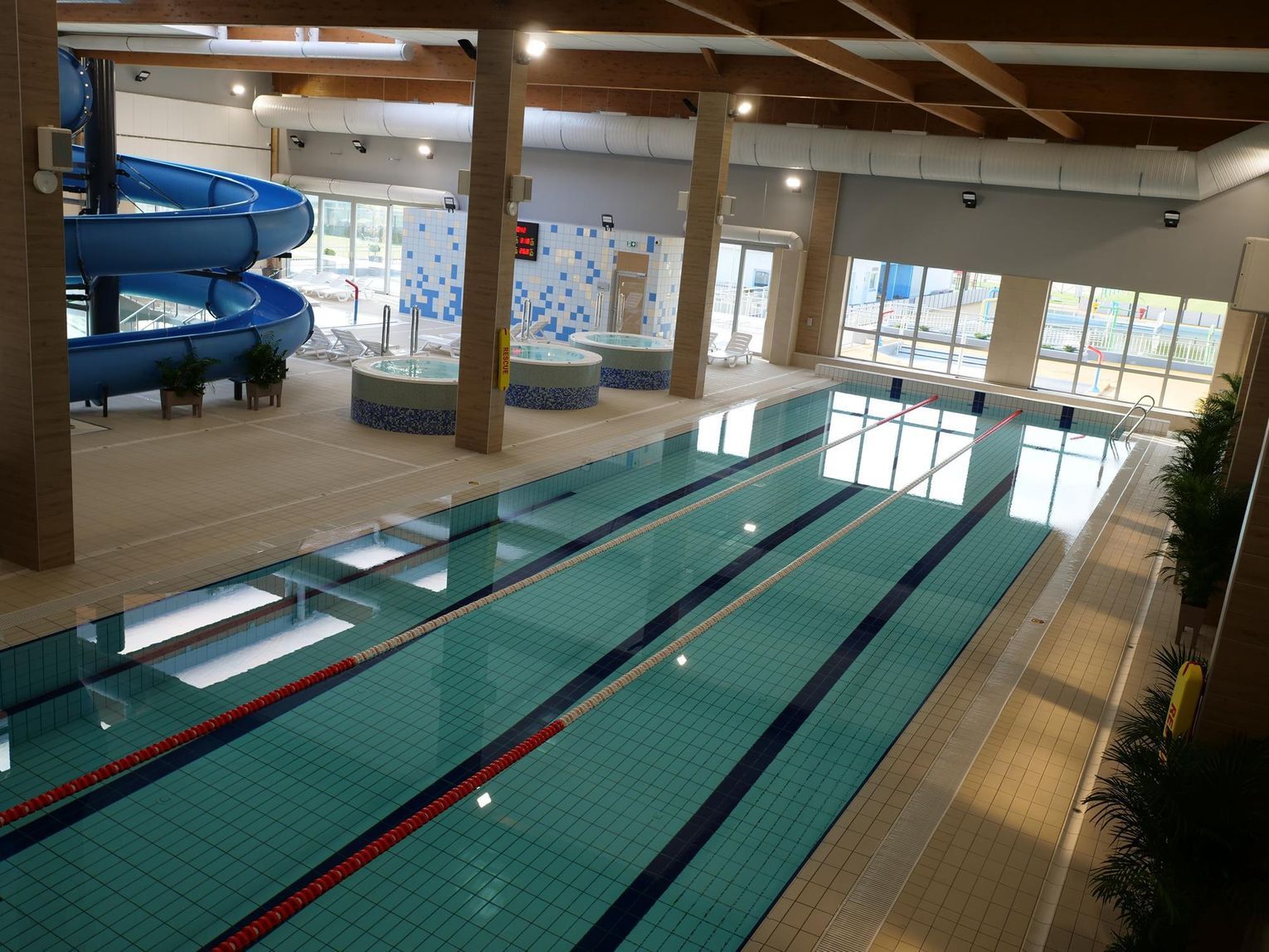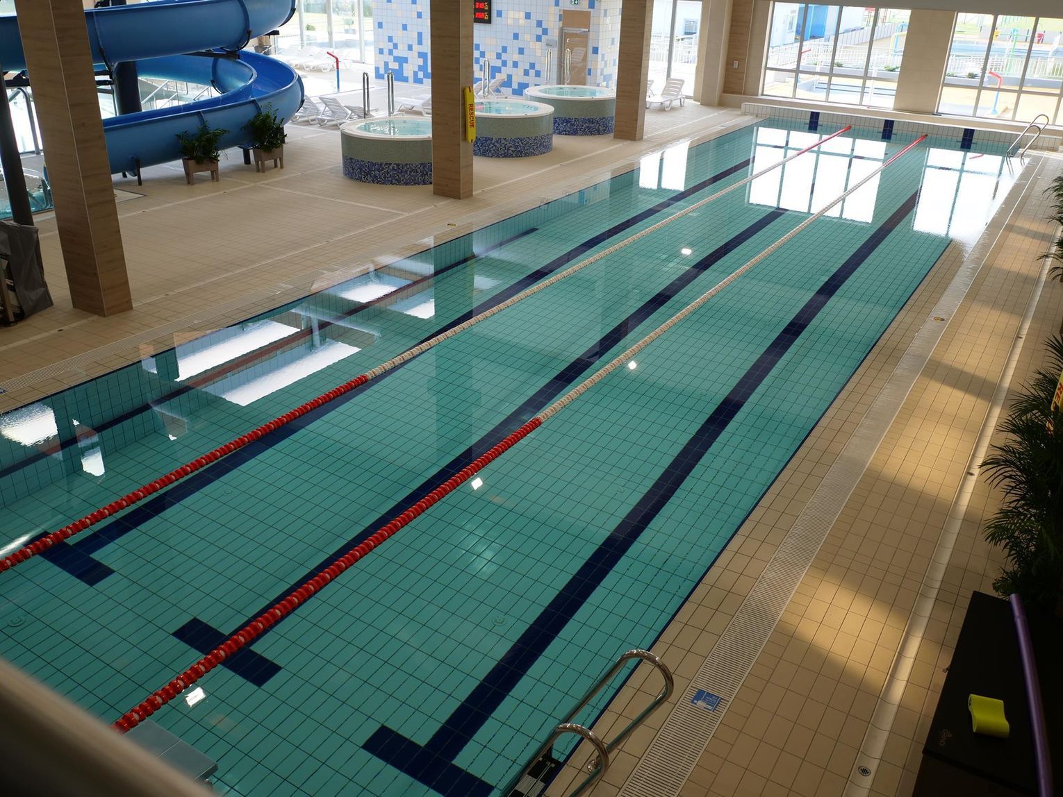 W 2025 roku strefa basenów wewnętrznych funkcjonowała przez cały rok, z wyłączeniem basenu rekreacyjnego wewnętrznego, który ze względu na przerwę techniczną został wyłączony z użytkowania na 12 dni w okresie 25.08–05.09.2025 r. W tym czasie opróżniono nieckę basenową i wykonywane były prace remontowe niemożliwe do wykonania podczas normalnej pracy basenu.