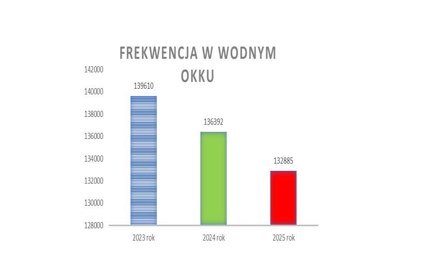 W sumie w 2025 roku, ze wszystkich stref Kędzierzyńsko-Kozielskiego Centrum Aktywności Wodne oKKo skorzystało 132 885 osób, dla porównania w roku 2024 było to 136 392, a w 2023 139 610 osób. Przyczyny spadku frekwencji należy upatrywać w mniejszej ilości odwiedzających strefę zewnętrzną, na co zdecydowany wpływ miały warunki pogodowe w sezonie letnim, niesprzyjające kąpielom na otwartej przestrzeni. W strefie basenów zewnętrznych zanotowano spadek frekwencji o 7 056 osób w porównaniu do roku 2024. Natomiast w pogodne dni frekwencja w tej strefie przekracza 1 000 osób dziennie.