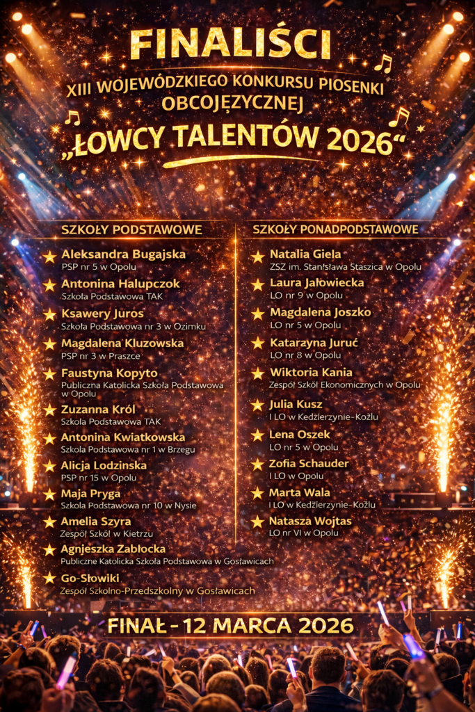Utwory w języku włoskim, francuskim, hiszpańskim, a nawet koreańskim zaprezentowali 12 marca 2026 roku uczniowie z całego regionu. W Zespole Szkół Zawodowych im. Stanisława Staszica w Opolu odbył się bowiem emocjonujący i stojący na wysokim poziomie finał Wojewódzkiego Konkursu Piosenki Obcojęzycznej „Łowcy Talentów 2026”. Zmierzyło się w nim 13 uczestników ze szkół podstawowych oraz 10 ze szkół średnich całej Opolszczyzny.