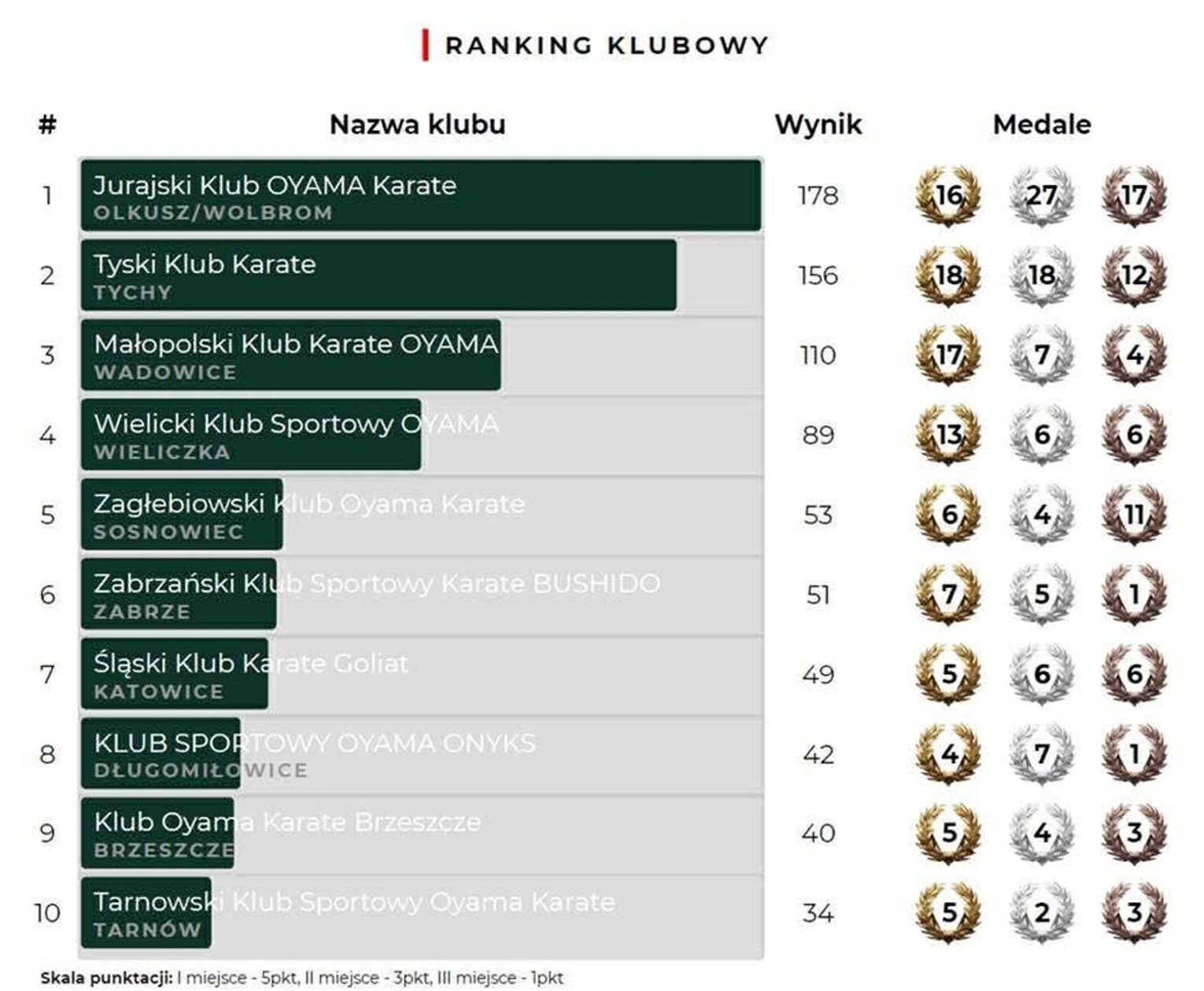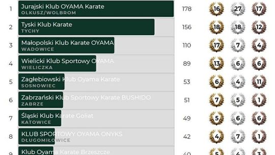 W zawodach wystartowało 400 zawodników z 20 klubów Oyama. Ekipę z naszego powiatu reprezentowało 13 zawodników. W klasyfikacji klubowej Oyama Onyks uplasował się na świetnym ósmym miejscu, zdobywając aż cztery złote, siedem srebrnych i jeden brązowy medal. Złoto wywalczyły: Angelika Semmler, Julia Pomykała, Laura Paczuła i Lena Kalisz. Srebrne krążki zdobyli: Alex Ryszka, Amelia Cwalina, Amelia Oberle, Antoni Schwientek, Jakub Ryborz, Karolina Pośpiech i Ksawery Pruszkowski. Brązowy medal trafił do Filipa Michalskiego. Skuteczność medalową klubu prowadzonego przez Annę Niemas oszacowano na bardzo wysokie 92 procent.