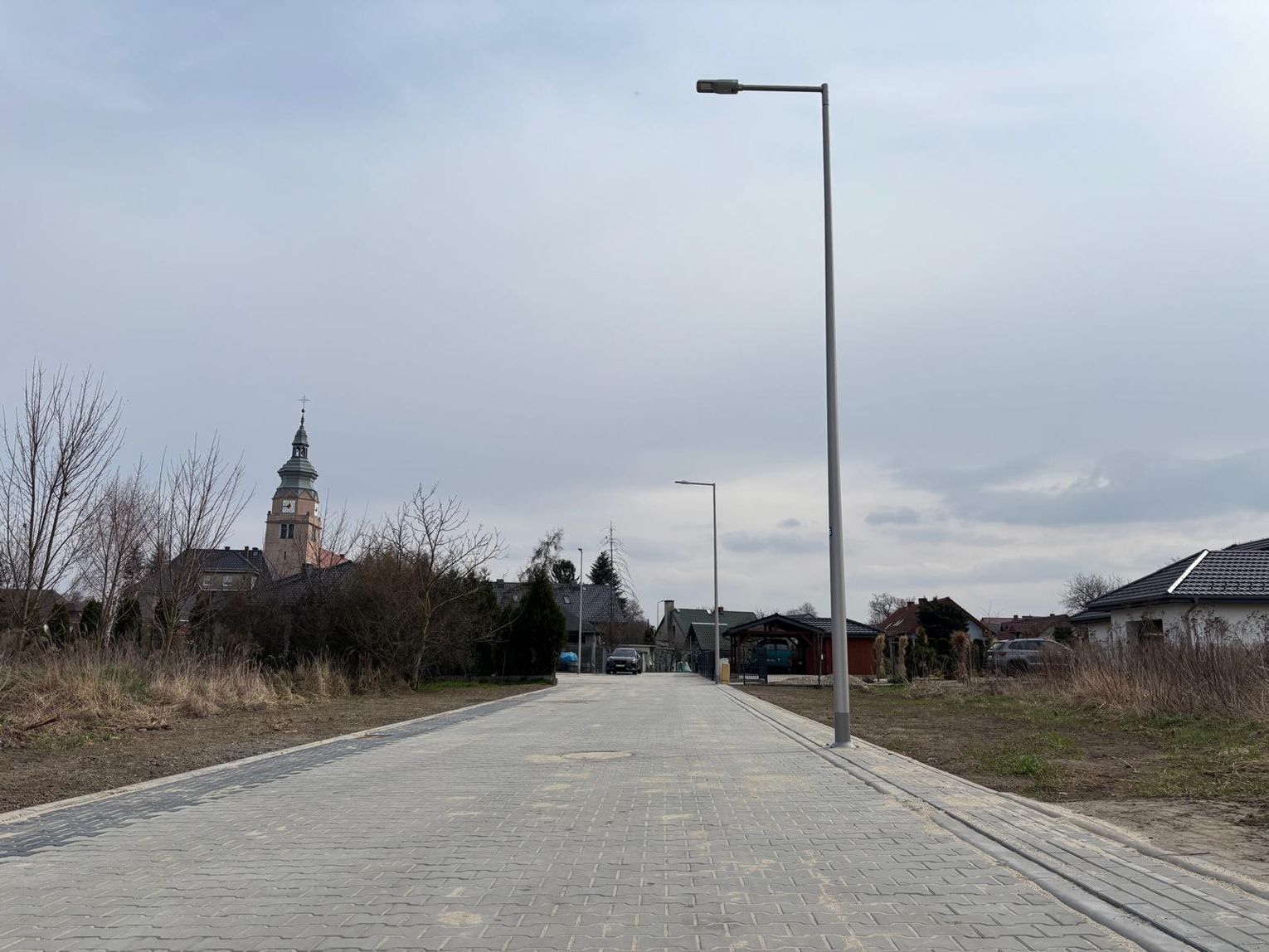Dawna droga gruntowa doczekała się nawierzchni z prawdziwego zdarzenia. Na całym odcinku ułożono kostkę brukową, a przy okazji uporządkowano infrastrukturę podziemną. Powstała kanalizacja deszczowa oraz kanał technologiczny. Bezpieczeństwo dodatkowo poprawi kilkanaście nowych latarni, które oświetlą ulicę po zmroku.