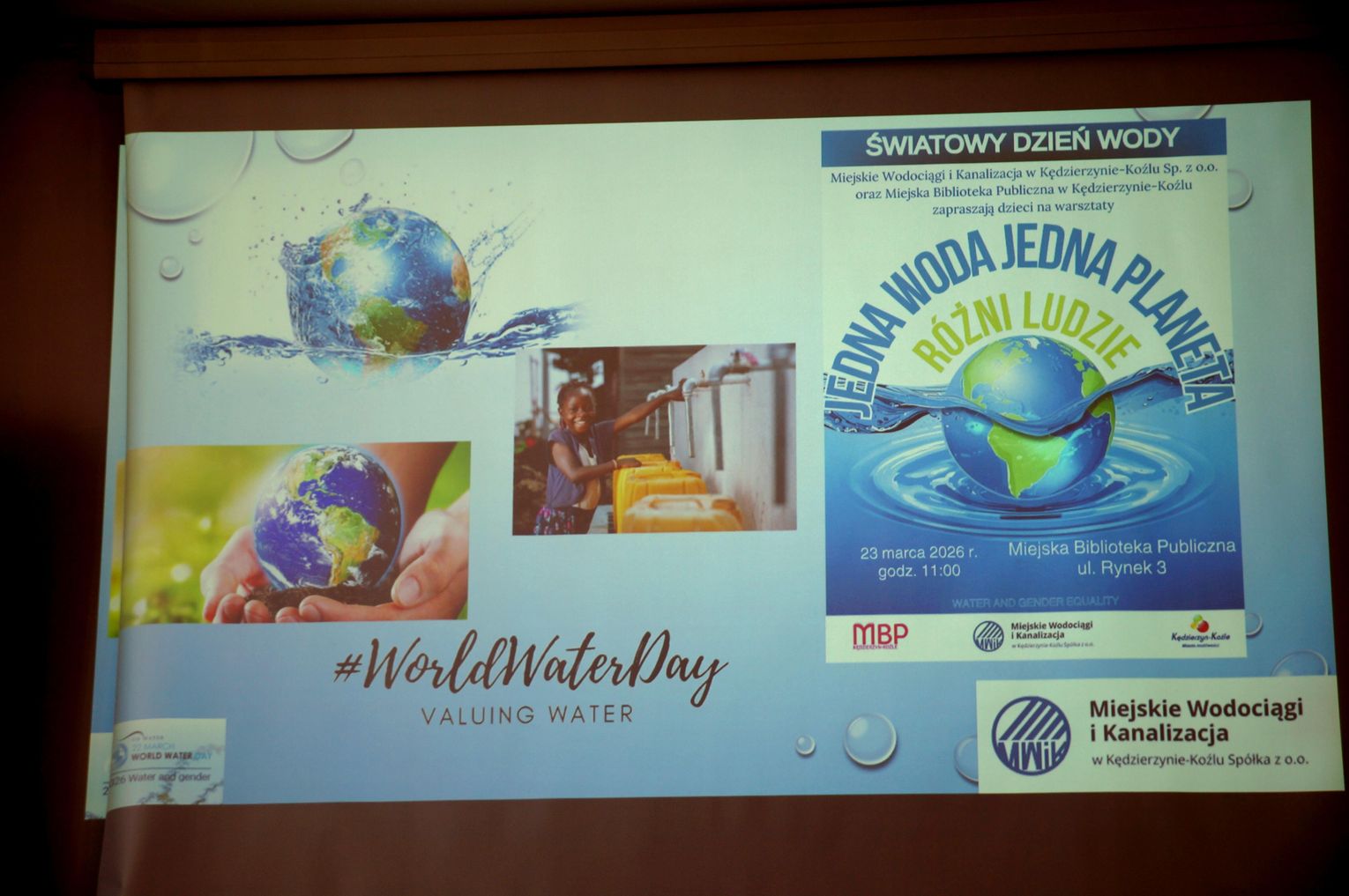 W zajęciach, zorganizowanych z okazji Światowego Dnia Wody, uczestniczyły: prezydent Sabina Nowosielska, Barbara Ermisch-Lipniacka, prezes Zarządu Spółki Miejskie Wodociągi i Kanalizacja w Kędzierzynie-Koźlu, Jak również reprezentująca MWiK Dorota Wawryńczuk, która wygłosiła ciekawą prelekcję na temat znaczenia wody w naszym życiu oraz Izabela Migocz, dyrektor Miejskiej Biblioteki Publicznej w Kędzierzynie-Koźlu.