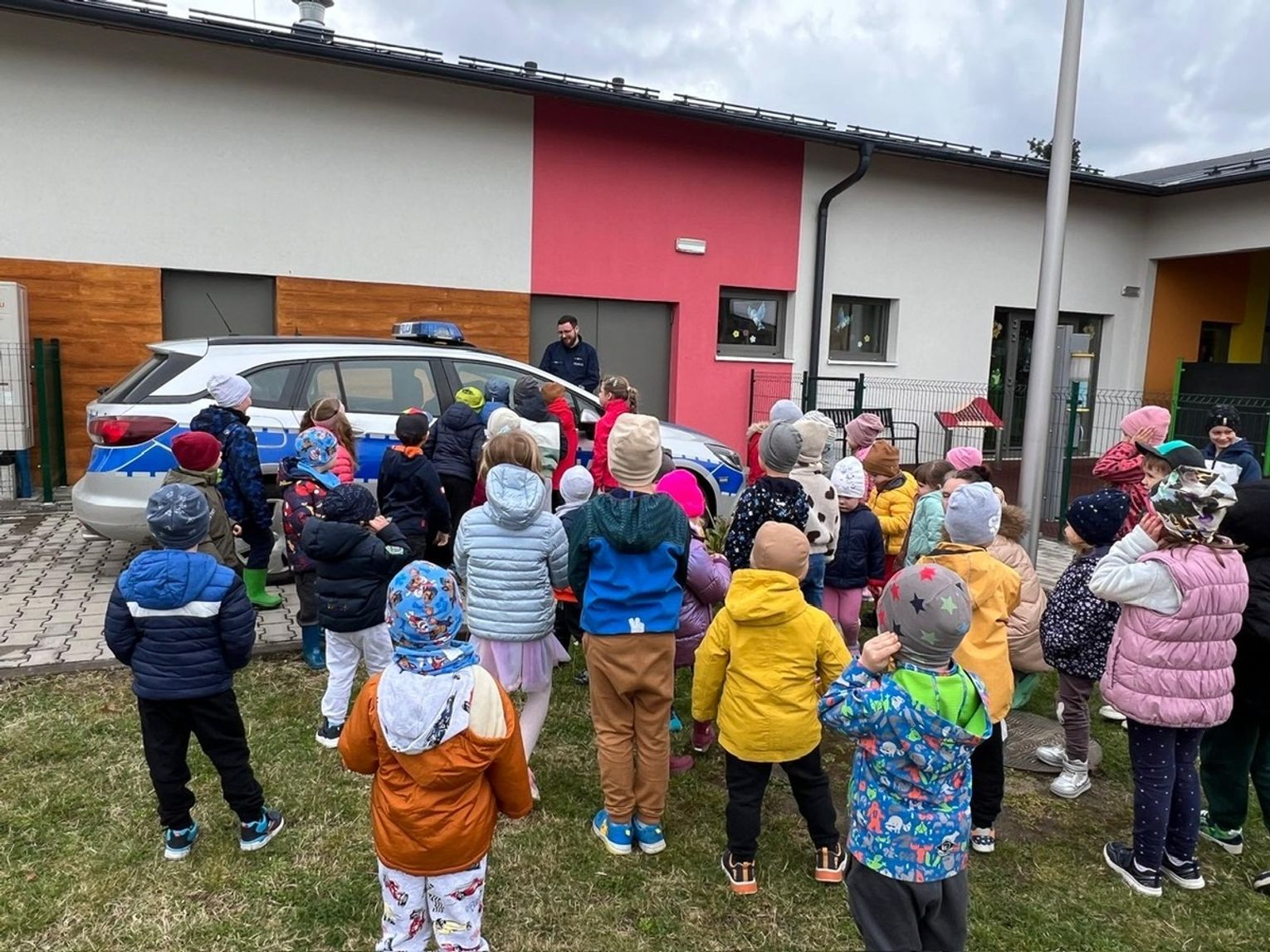 Na zakończenie wizyty dzieci miały okazję z bliska zobaczyć policyjne wyposażenie i radiowóz, a także porozmawiać o codziennej pracy funkcjonariuszy. Była to świetna okazja, aby od najmłodszych lat budować zaufanie i poczucie, że policjant to ktoś, kto zawsze służy pomocą.