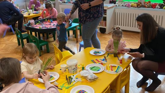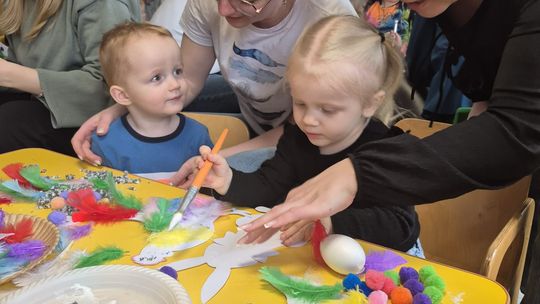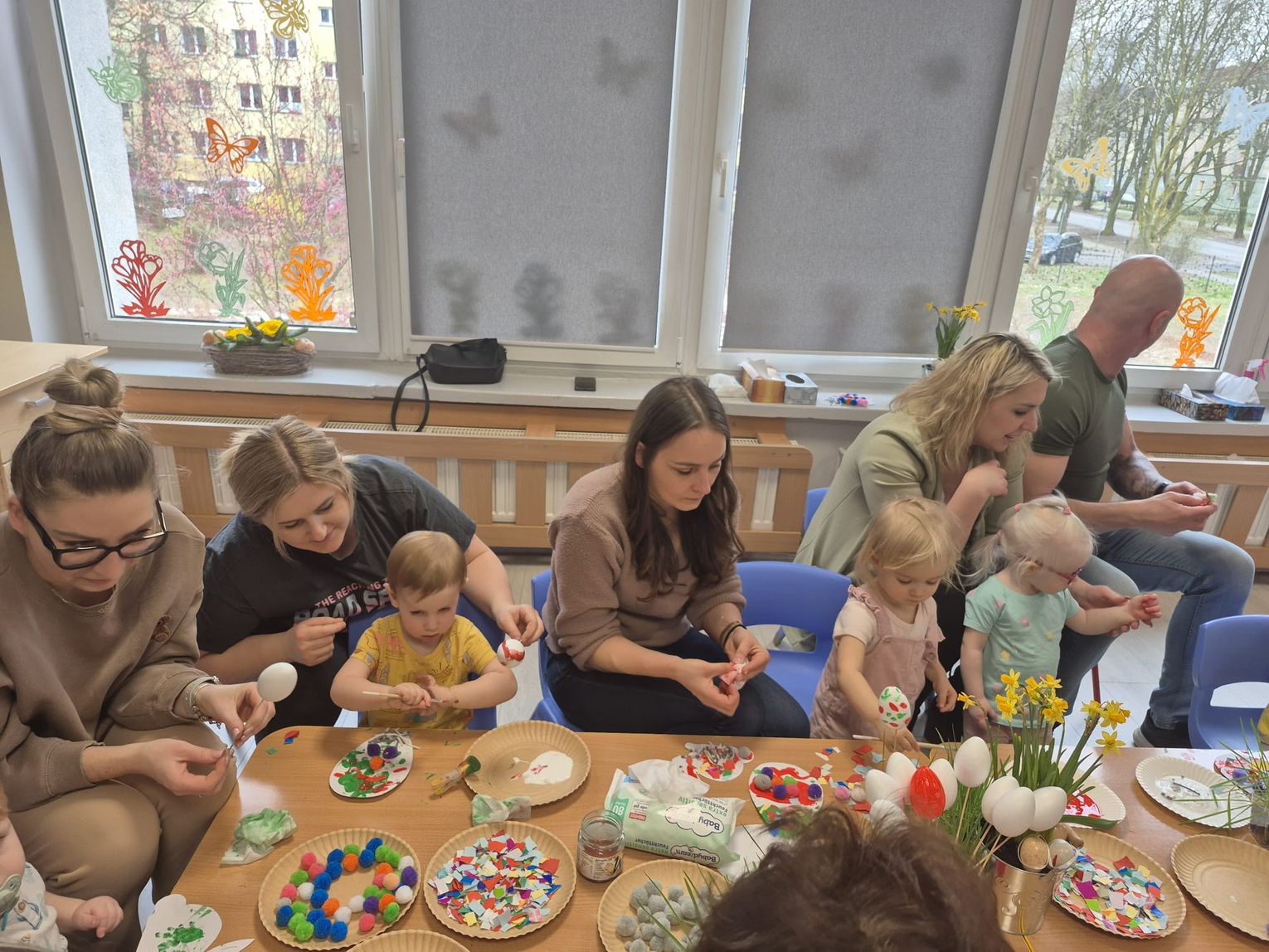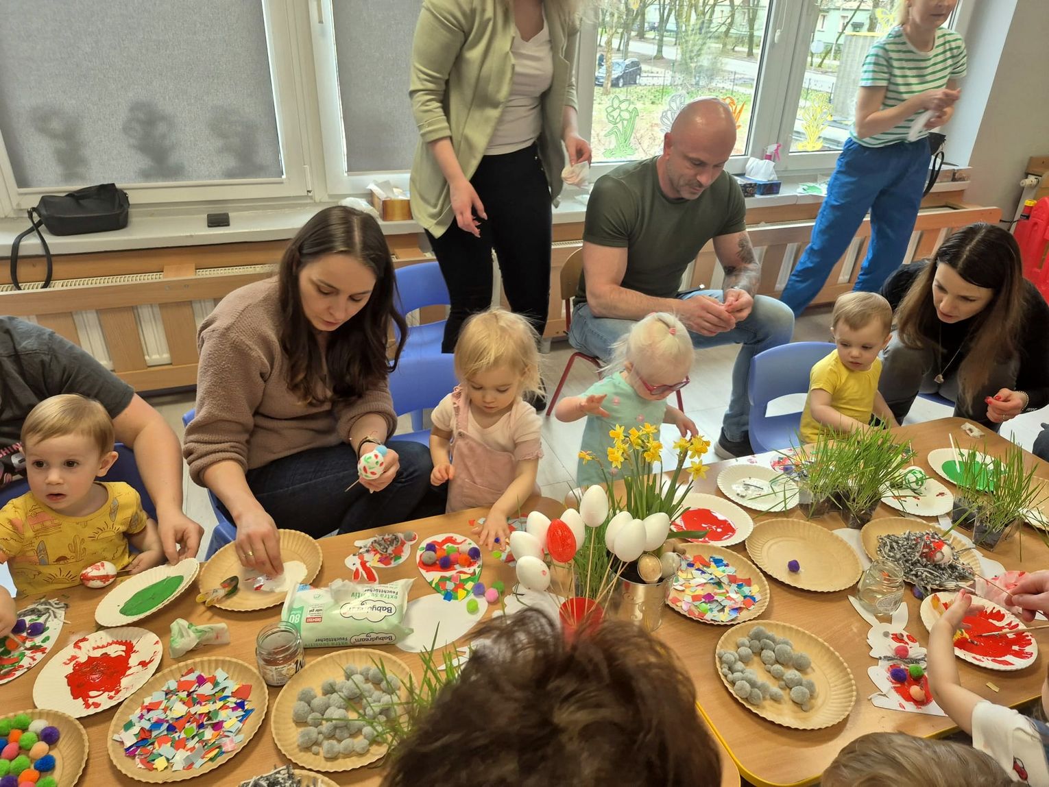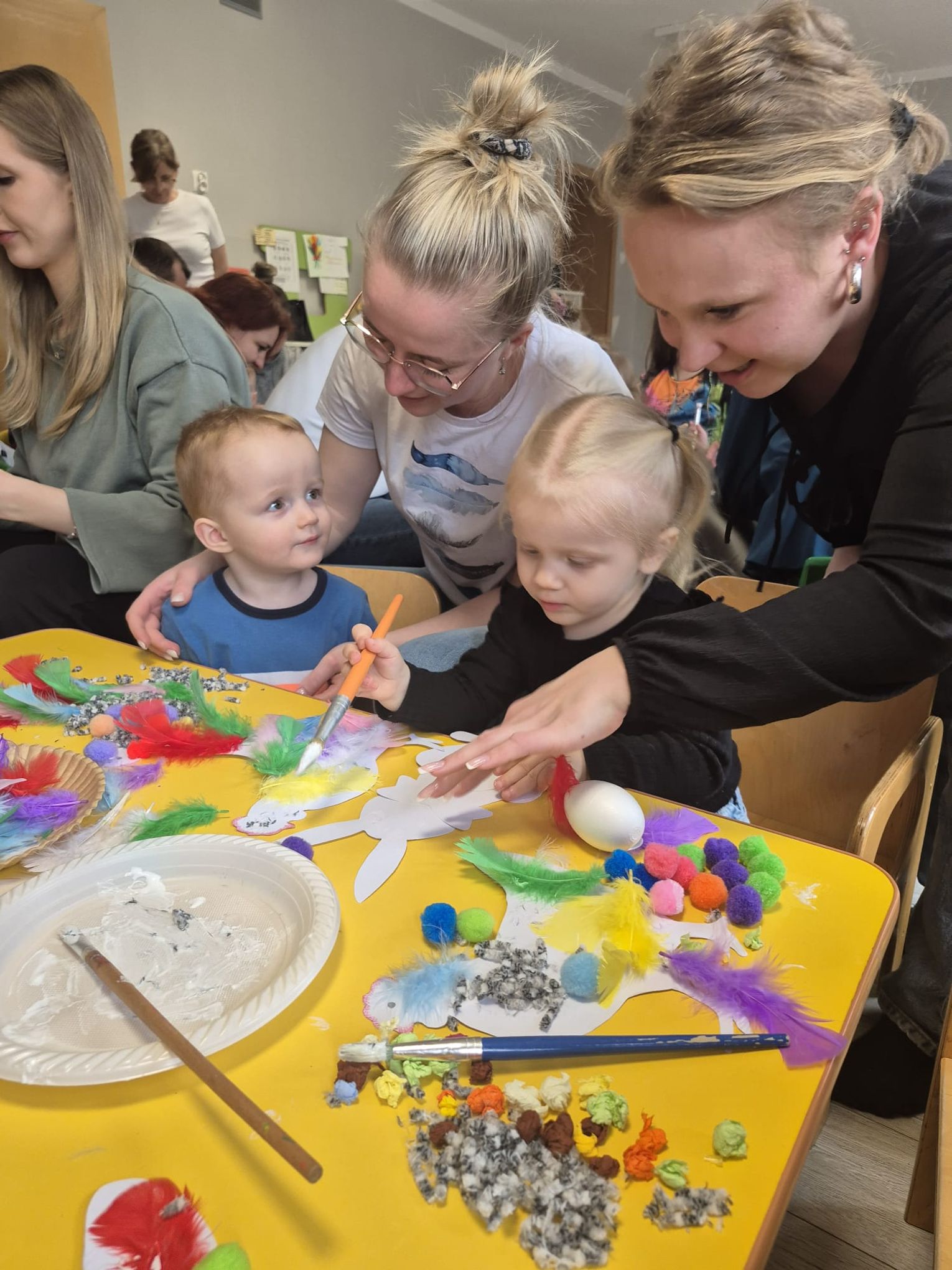 W kreatywnych warsztatach wielkanocnych wzięły udział roczne i dwuletnie dzieci wraz z rodzicami oraz starszym rodzeństwem. Było to spotkanie pełne uśmiechu, twórczej zabawy i wspólnego spędzania czasu. Takie, które choć na chwilę pozwoliło zwolnić tempo codzienności.