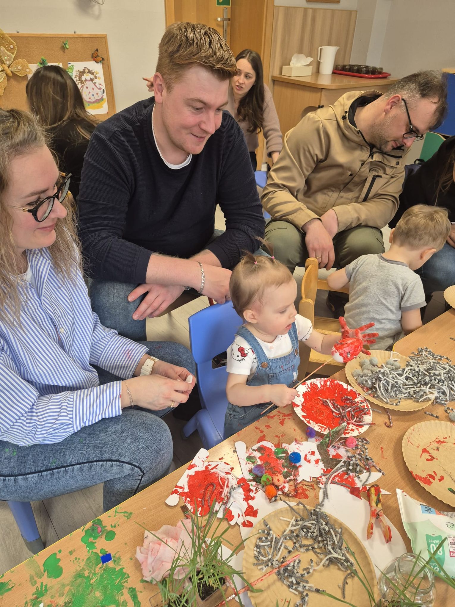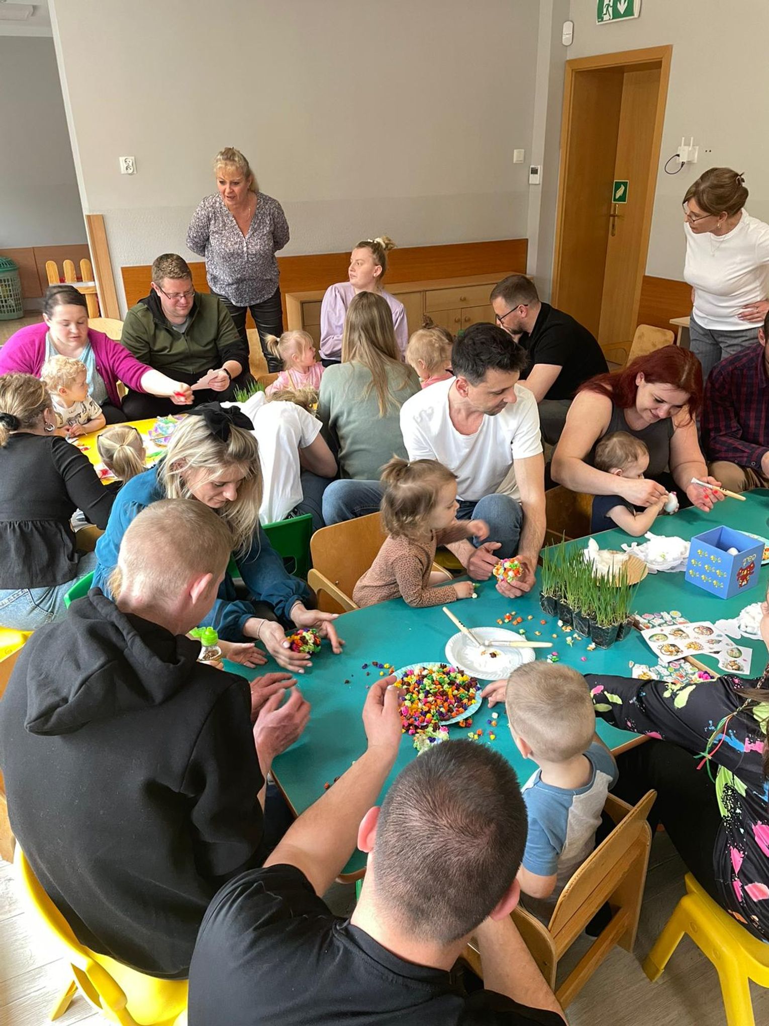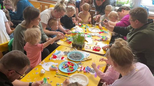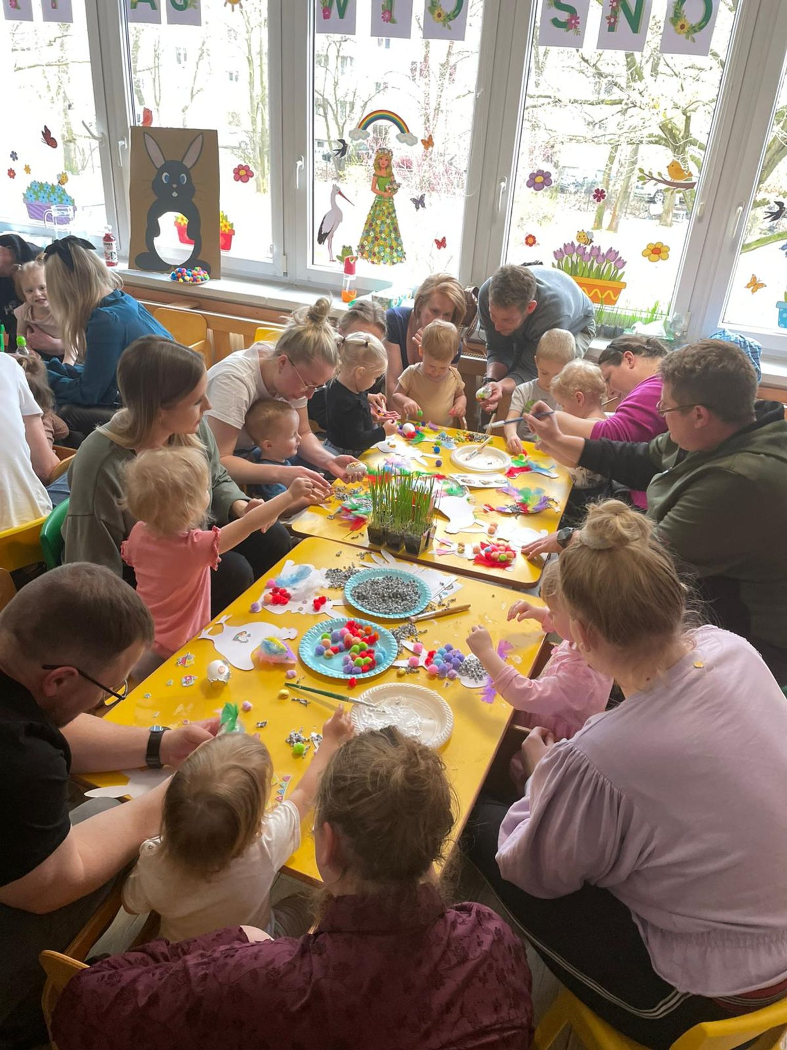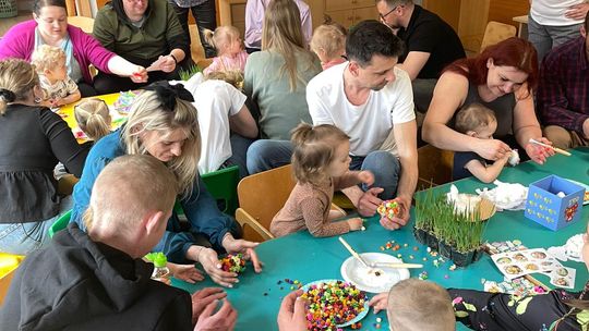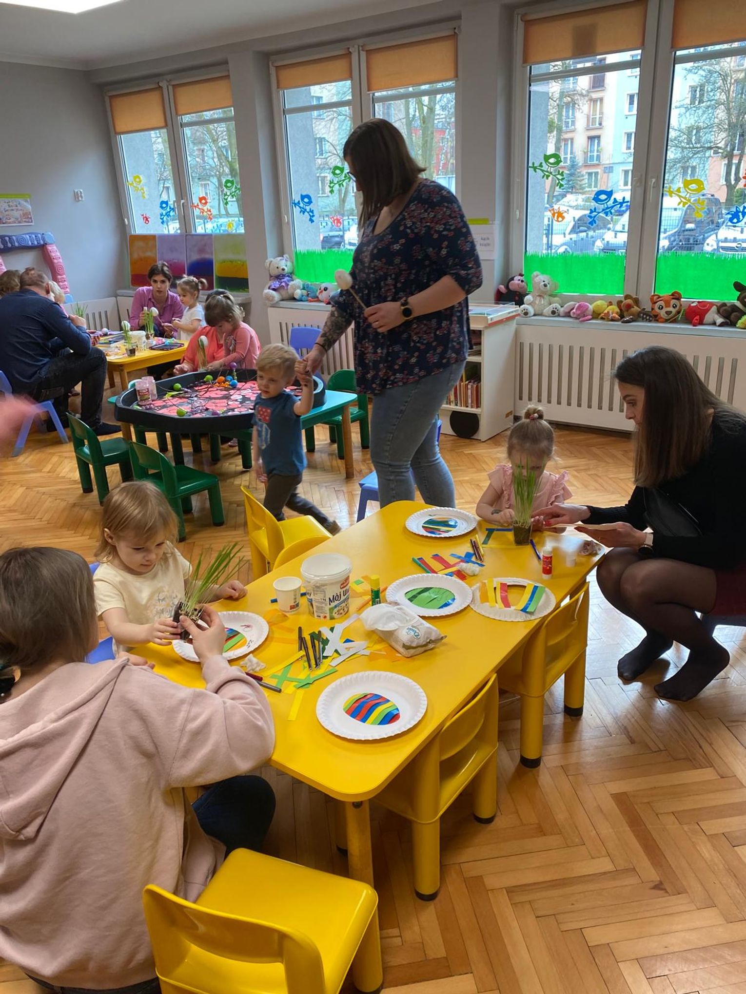 W kreatywnych warsztatach wielkanocnych wzięły udział roczne i dwuletnie dzieci wraz z rodzicami oraz starszym rodzeństwem. Było to spotkanie pełne uśmiechu, twórczej zabawy i wspólnego spędzania czasu. Takie, które choć na chwilę pozwoliło zwolnić tempo codzienności.