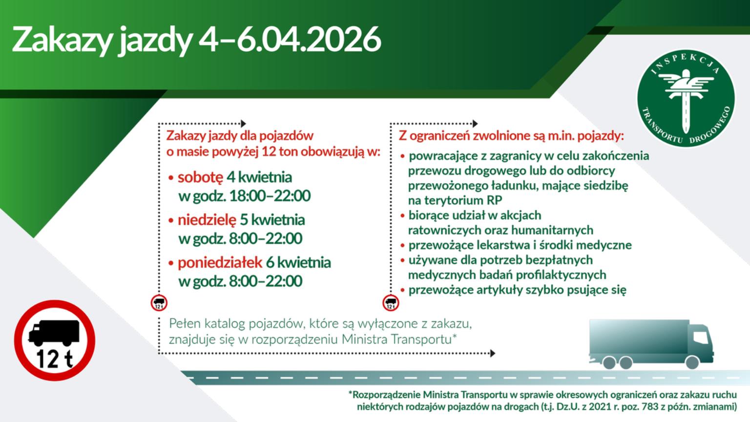 Zakaz ruchu dla ciężarówek obowiązuje w następujących dniach i godzinach:
