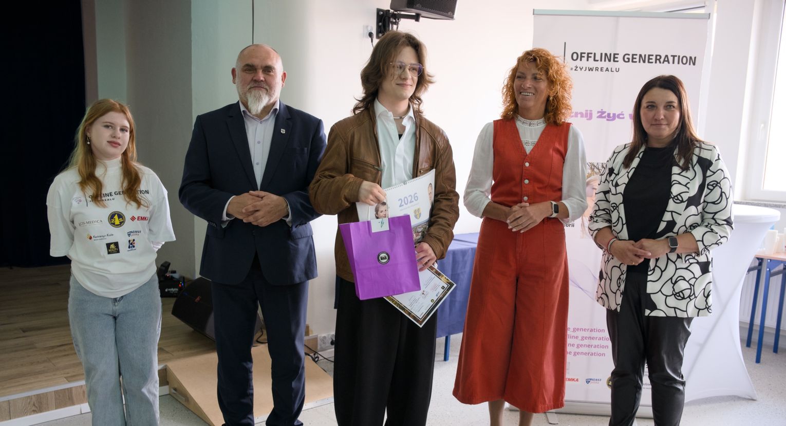 Ich projekt Offline Generation, realizowany w ramach ogólnopolskiej olimpiady Zwolnieni z Teorii, okazał się czymś więcej niż szkolną inicjatywą. To był dobrze przemyślany, odważny i potrzebny społecznie projekt, który realnie poruszył młodych ludzi. Opiekunem merytorycznym konkursu z ramienia Zespołu Szkół Nr 1 była nauczycielka mgr inż. arch. Ramona Kowalska - "dobry duch" takich wydarzeń w ZS nr 1.