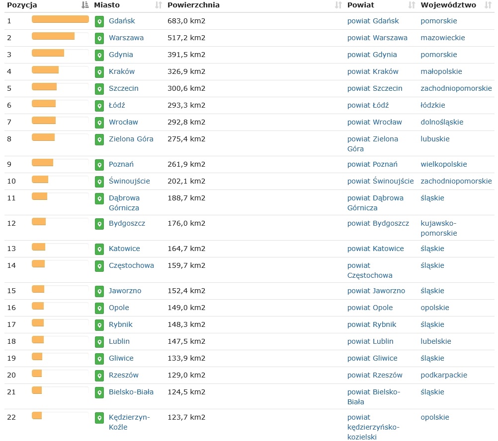 - 31 miast o powierzchni przekraczającej 100 km2